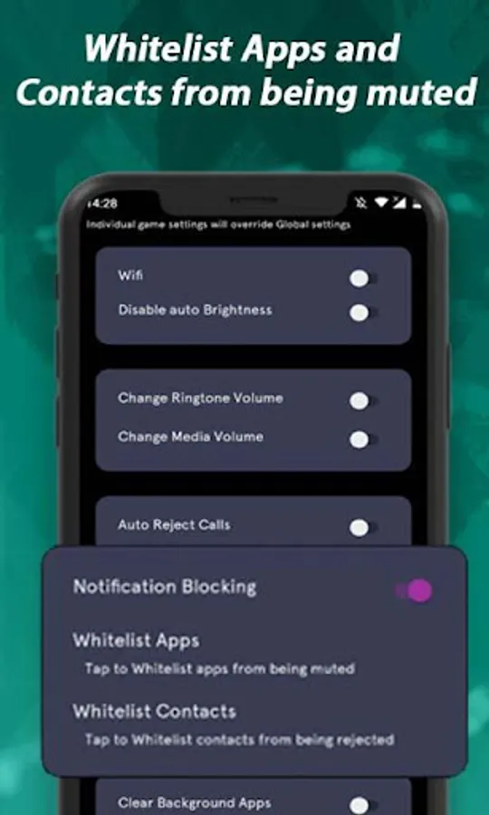 You can configure various settings that will get applied automatically when the game starts. You can configure these settings Globally or on per game basis. Gaming Mode also remembers your existing device settings and restores them after your gameplay session once you close the service from notification panel. Now you no longer need to fiddle around with your device settings before each gameplay session.