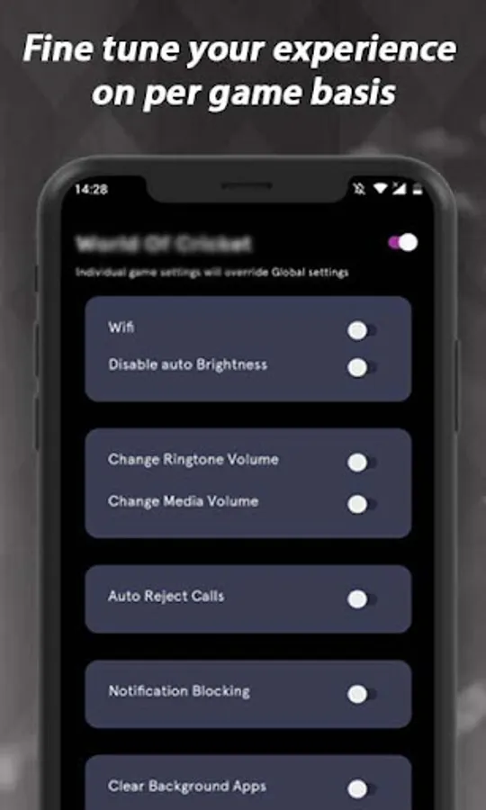 You can configure various settings that will get applied automatically when the game starts. You can configure these settings Globally or on per game basis. Gaming Mode also remembers your existing device settings and restores them after your gameplay session once you close the service from notification panel. Now you no longer need to fiddle around with your device settings before each gameplay session.