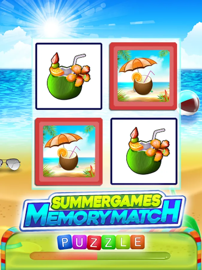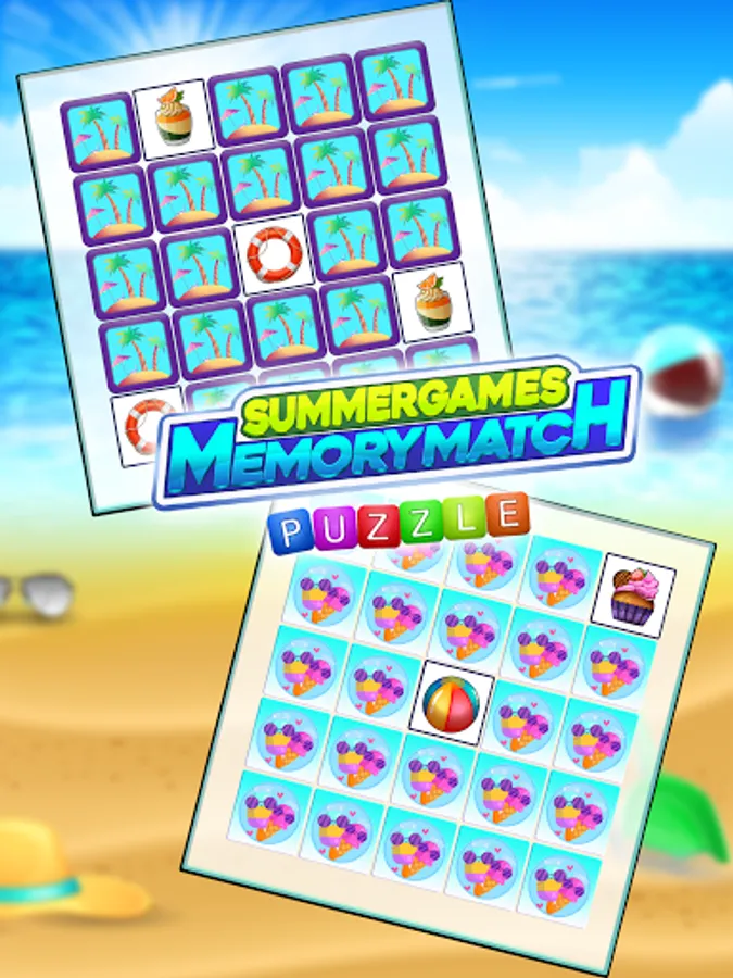 Brain game that will test your visual memory game. in this amazing summer time which you have to find matching pairs with your sharpness. This Memory game for young or old. You must memorize a board with the same pairs of disordered summer images. This learning exercise USER will have hours of fun. Match puzzle game will put you in a HOT happy SUMMER mood! This is the classic game of brain exercise where you have to find pairs of same images. After a short time they will cover up and you will have to find all the couples, but hurry up, time runs against you and new levels are wetting for you.
