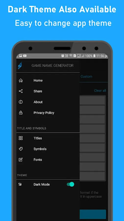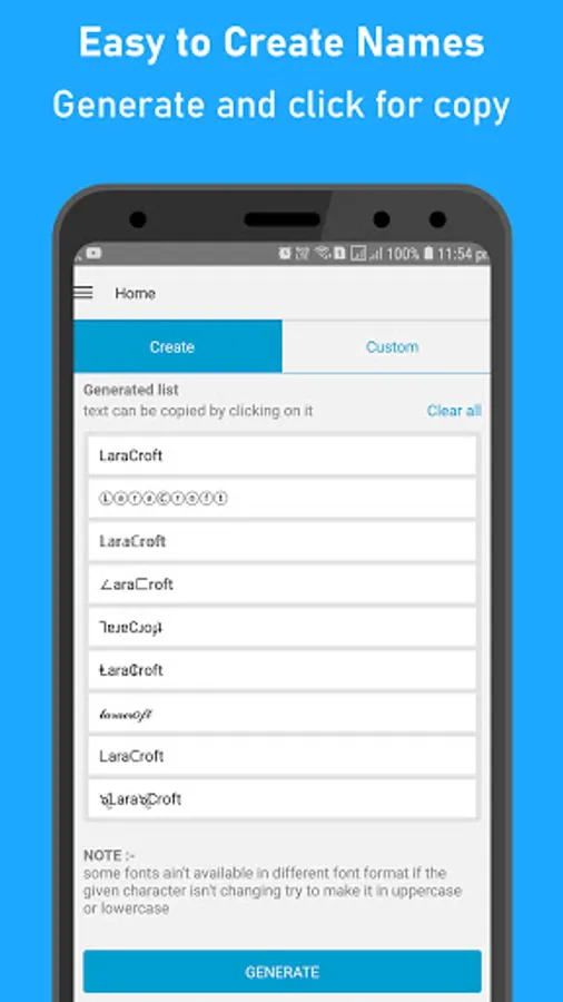 GNG - Game Name Generator is a tool application. to create or generate unique name for your game. easy to create. (you can create your name by default given titles, symbols and fonts, except this you can go with the custom option. where you can find more than 100 symbols, titles, and font that you can copy easily and use) and there are titles, fonts and symbols available separately that you can use as well.