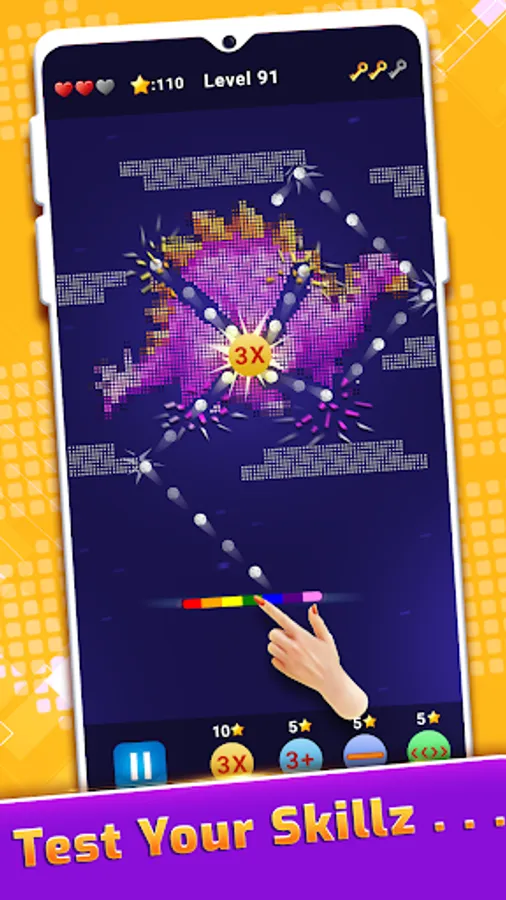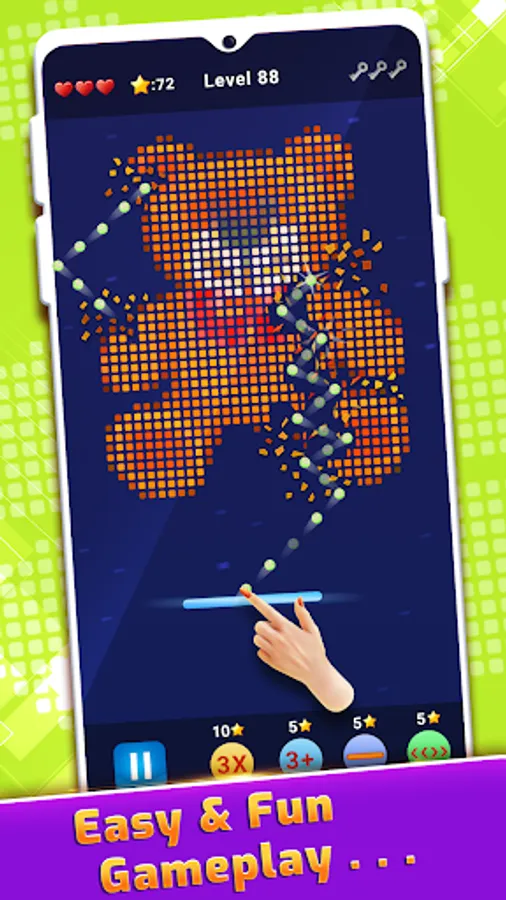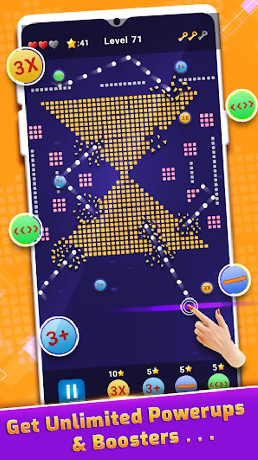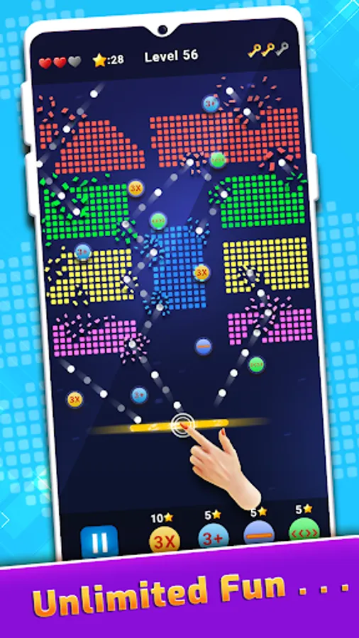 Swipe your finger to control the paddle and bounce the ball to break all the bricks. Aim for precision and strategy as you navigate through challenging levels, demolishing bricks and collecting power-ups along the way. But be careful! Don't let the ball slip past your paddle, or you'll lose a life.