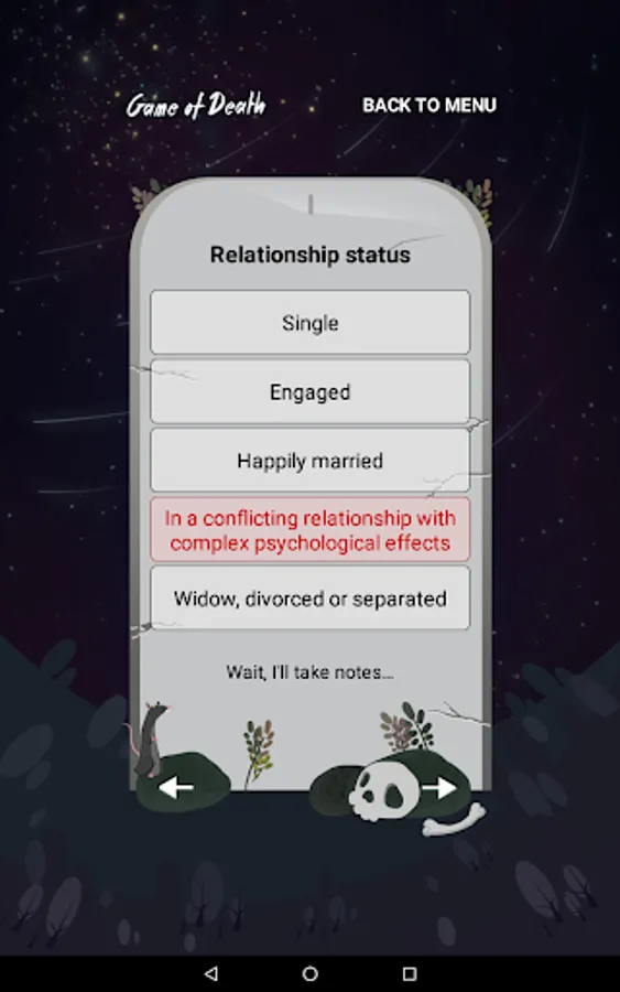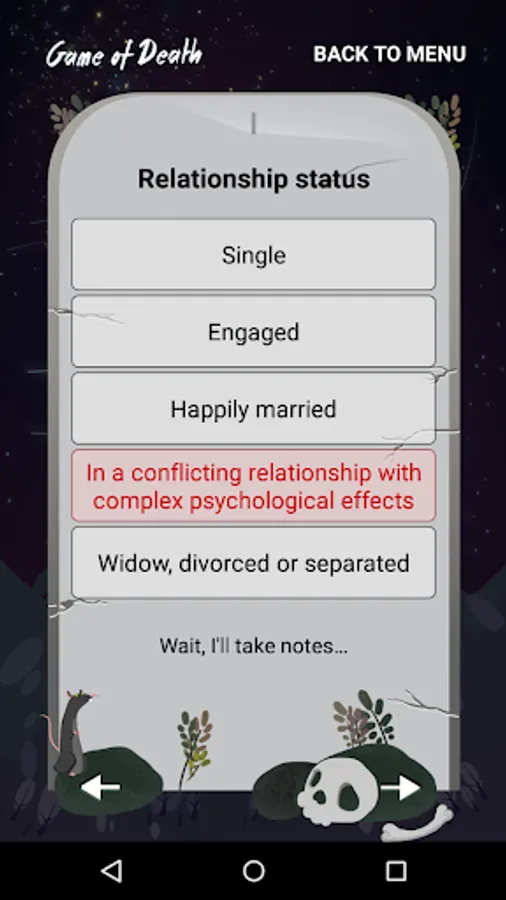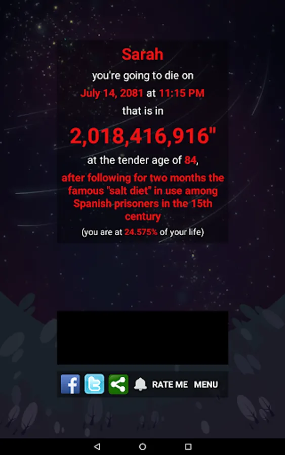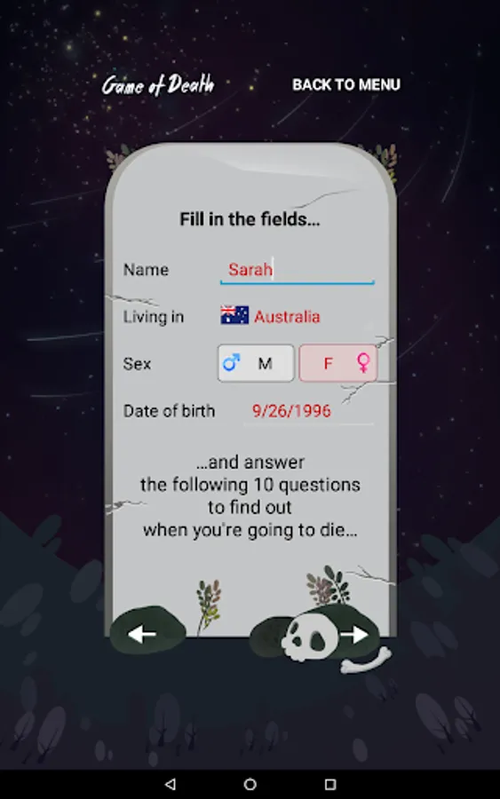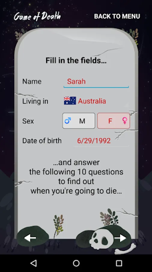 Despite its nature of a simple game, the Game of Death calculates the date and the cause of your death based on official statistics regarding life expectancy and the answers you give.