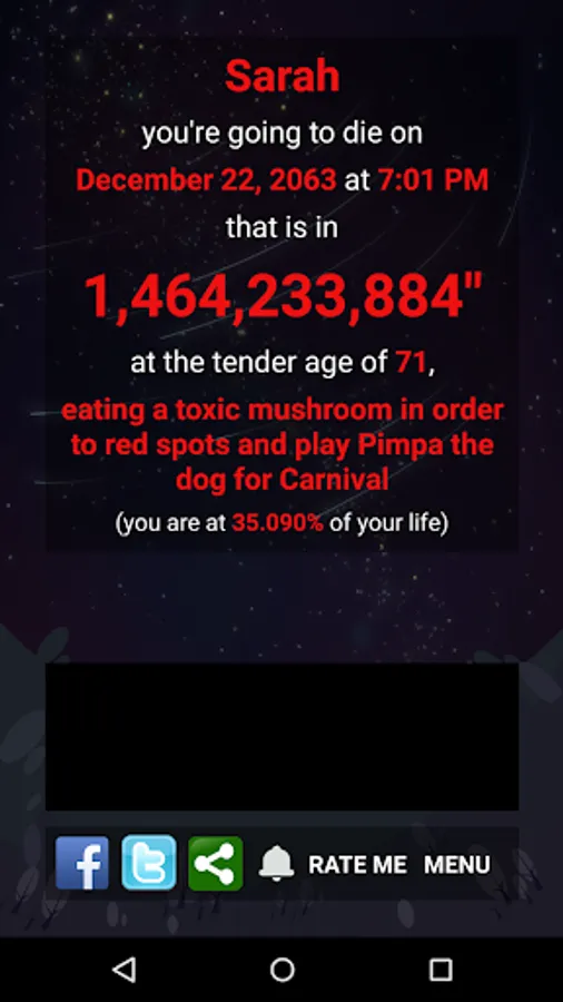 · compare your results with other people: who, among your friends and beloved ones, is going to leave this planet first?