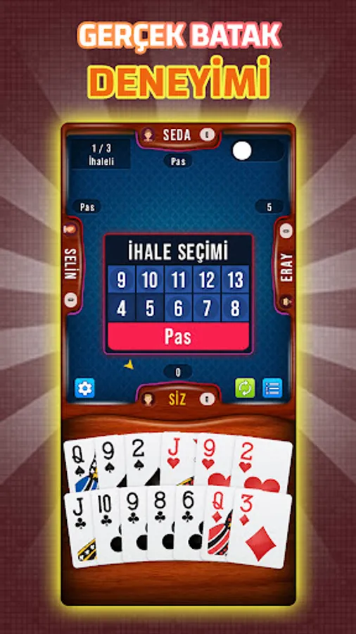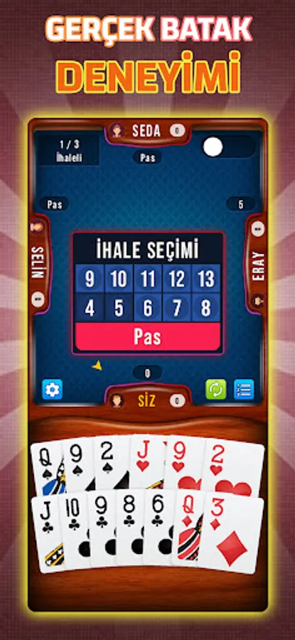 Batak is a great option for those who love card games. Download Batak now and show off your strategy to defeat your opponents. Enjoy playing cards and compete with the best players. Join the world of Batak and enjoy the victory!