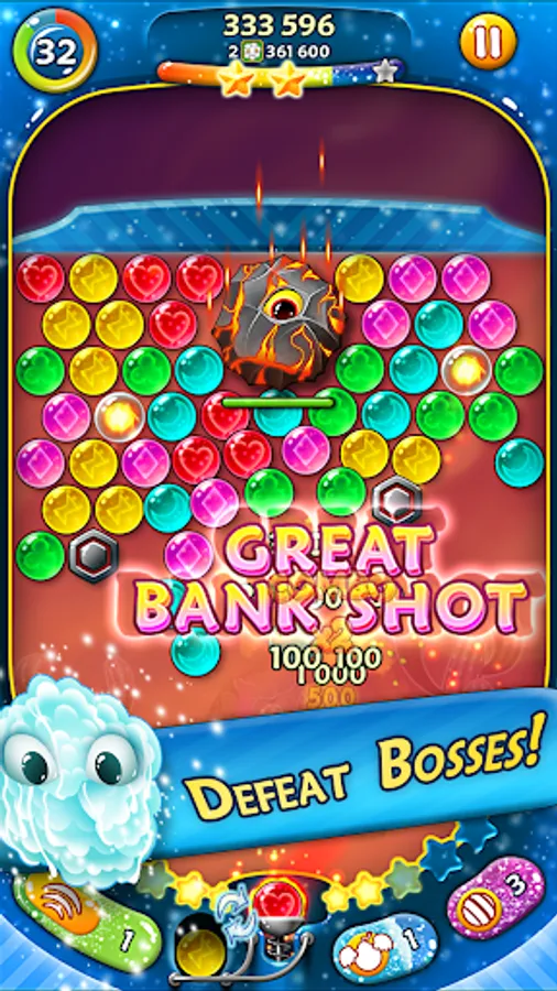 Easy and fun gameplay - tap where you want to shoot bubbles, make clever matches and defeat the obstacles and bosses to finish the level!
