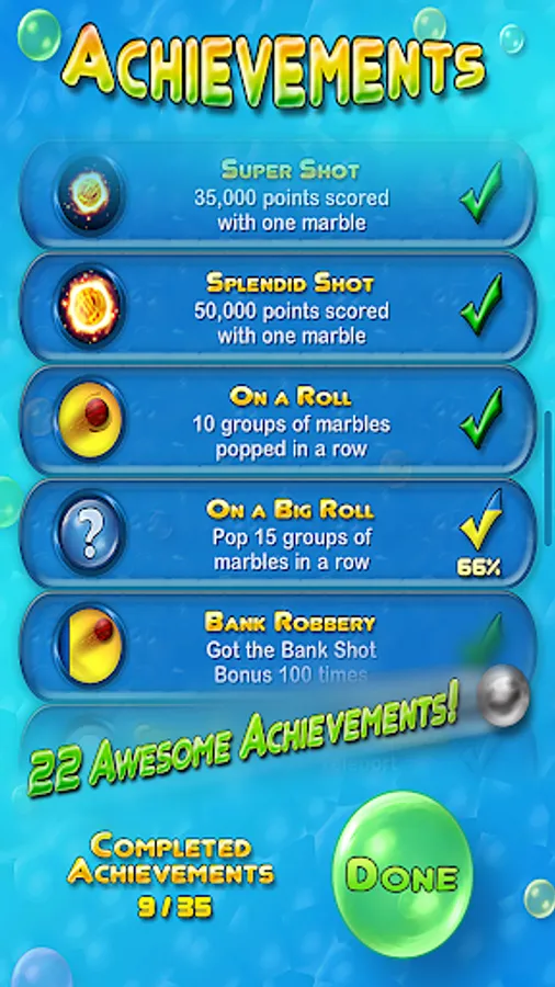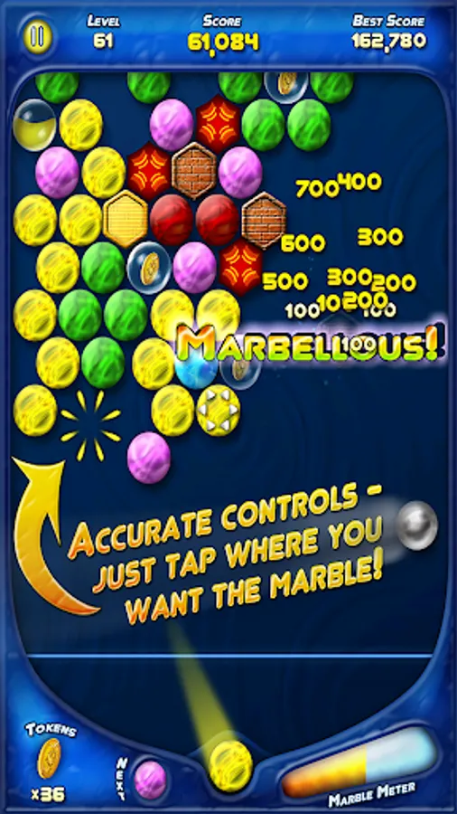The game is easy to play - shoot bubbles, clear the marbles and bust the hidden key bubble - yet amazingly fun and challenging!