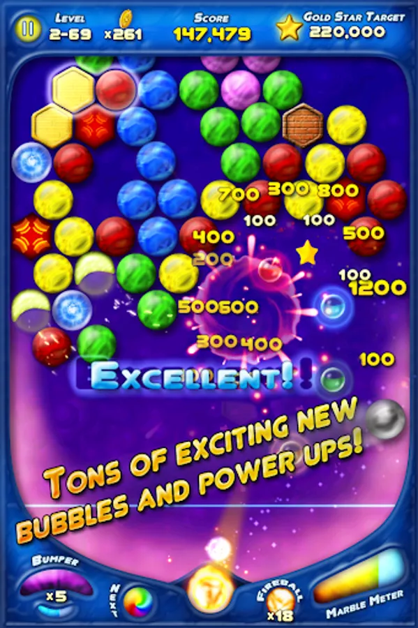 This bubble shooter game is easy to play - shoot bubbles, clear the marbles and bust the hidden key bubble - yet amazingly fun and challenging!