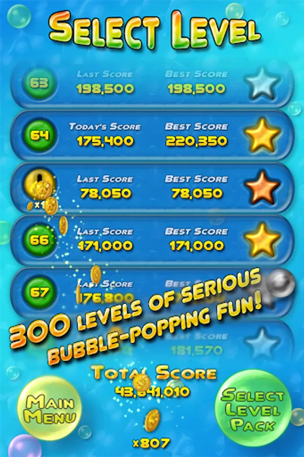 This amazing bubble shoot game features highly addictive gameplay, 3 bubble worlds and 300 FREE levels of bubble-shooting fun, global high scores, 3 star ranking system and TONS of exciting new bubbles and power ups never seen before!