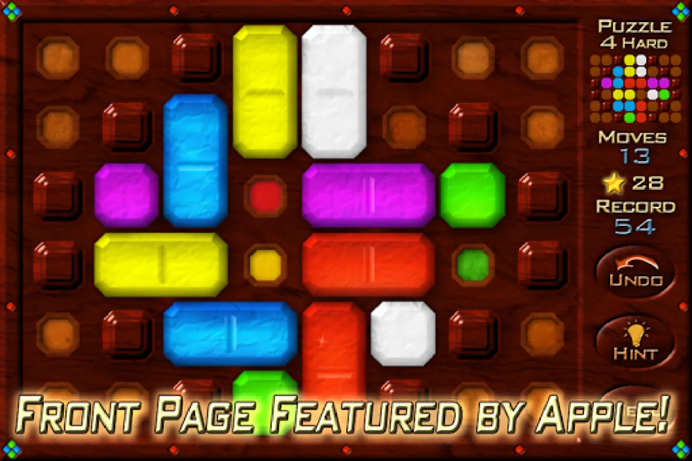 There are hundreds of handcrafted puzzles to choose from, with three difficulty levels. And as the game tracks your personal best moves and lets you earn silver and gold stars for each puzzle, you always have a new record to beat and gold stars to collect! If you get stuck you can always ask for a hint or even let your smartphone/tablet solve the puzzle for you!