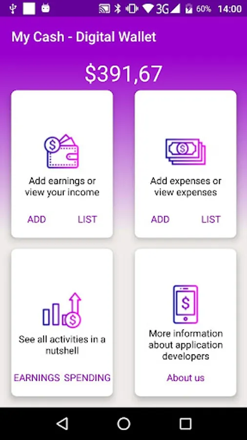 MyCash is an APP developed to help you control your finances. With it you can control your activities, being able to register your income as salary or earnings of any kind, and your expenses as card bills, bills, fuel. That way you'll know where that extra earned at work went.