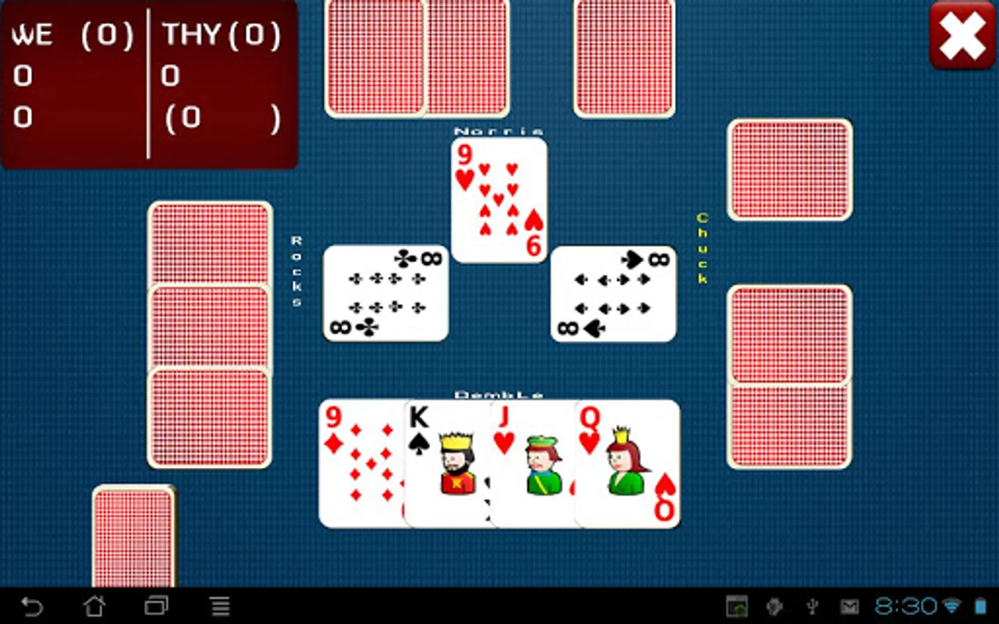 - It is played with two teams against each other, each team with two players and each player has four cards in hand at the same time.