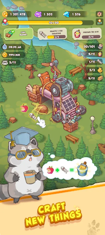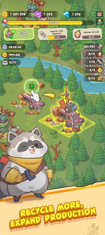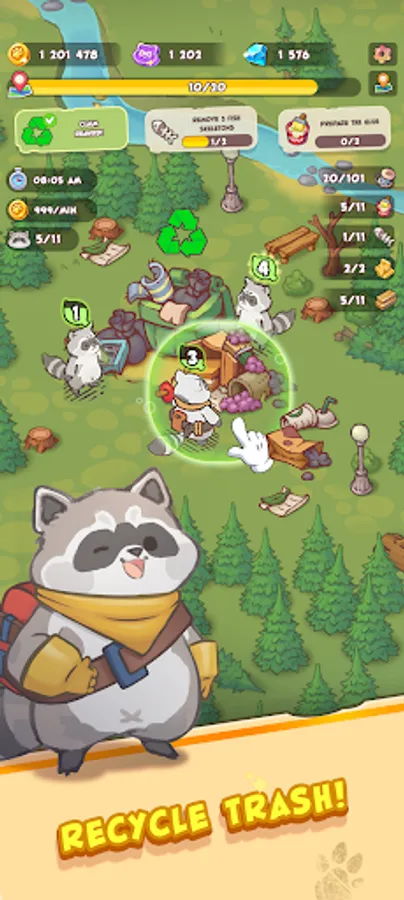 Recycle collected trash all over the world and promote raccoons to incredible professions!