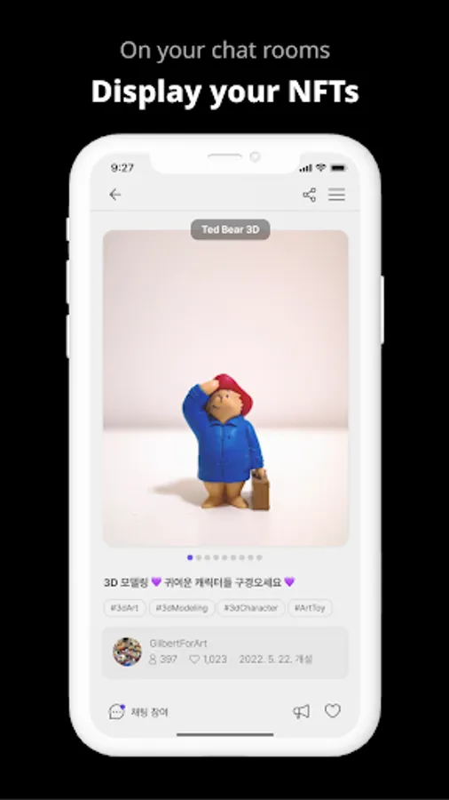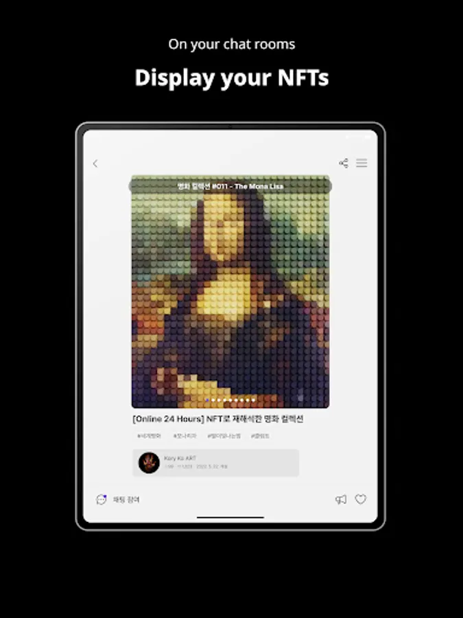 Use the chat rooms to talk about the exhibited NFTs. Or simply create your own.