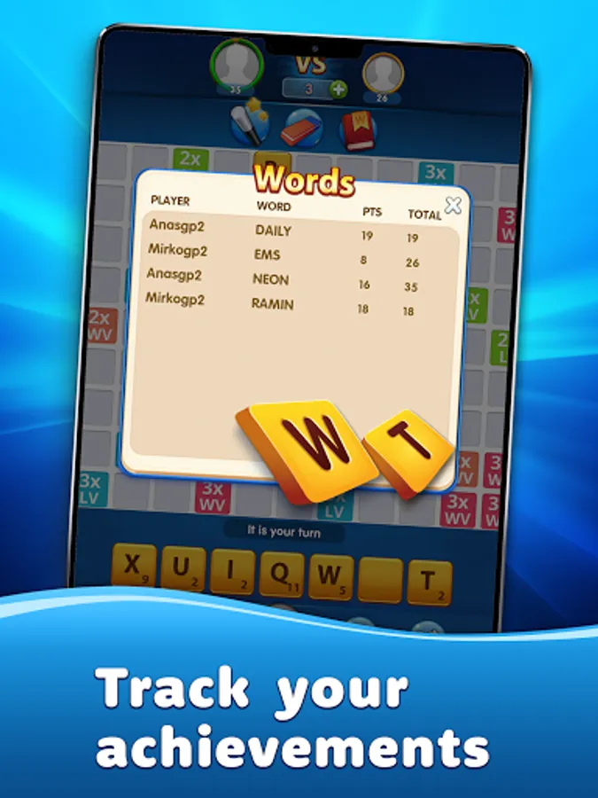 With a fully optimized functionality you can choose to either play Wordtornado in a CLASSIC and FASTER TURN mode. The familiar CLASSIC mode allows you to enjoy the game at your own pace, while for those living in the fast lane will prefer the FASTER TURN mode.
