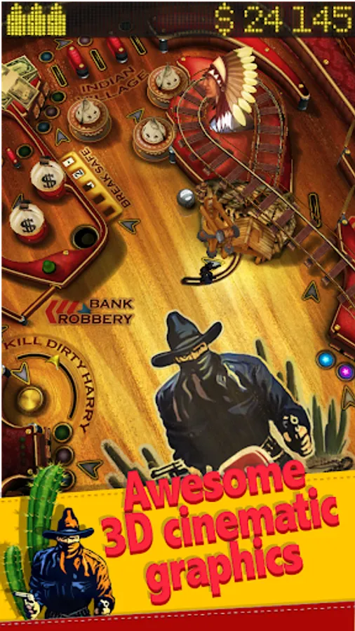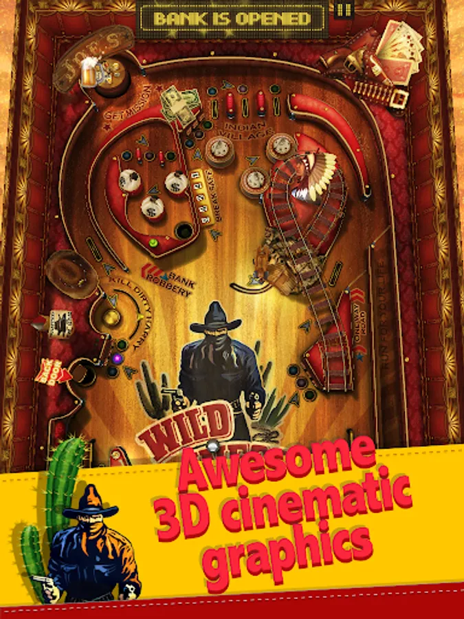 Welcome to Wild West Pinball - world first professional pinball simulator for smartphones and tablets. With fast 3D graphics and realistic physics this game will blow your mind. All parts of pinball table are real objects and you can see how it works! Western style locations and environment gives you a lot of fun.