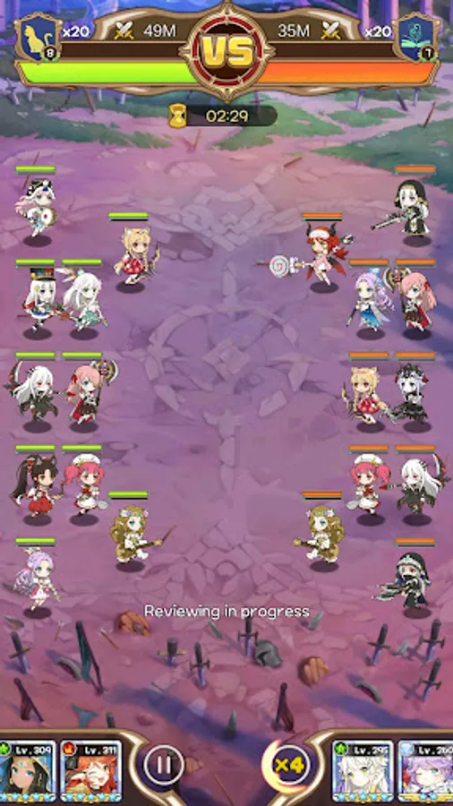 The battle all about the same but you can make a difference with formation, skills, equipment, and character combination!