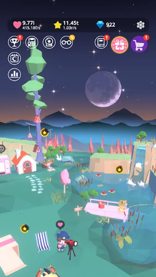 Build your own island with various animals like giraffes, pandas, rabbits, monkeys, llama, hedgehogs, zebras, unicorns, hippos and so on and release your tense naturally smoothly. constellations like Aquarius, Pisce, Aries, Taurus, Gemini and Cancer will make your sky much more beautiful. Look at your own island and remove all stress out.