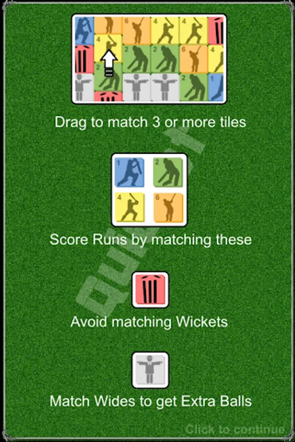 Quicket mixes the gentleman's game of cricket with an addictive drag-and-match puzzle game. Hit singles, blast fours and smash sixes while avoiding wickets. Match wides for extra balls.