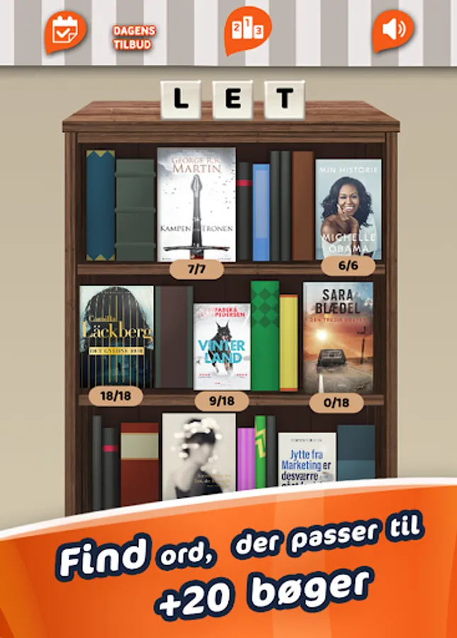 The words to be found are all extracted from Mofibo's audio books. You simply choose a book you know and immediately you are in the process of finding words. Mofibo's word game offers thousands of tasks that you can play at many different levels.