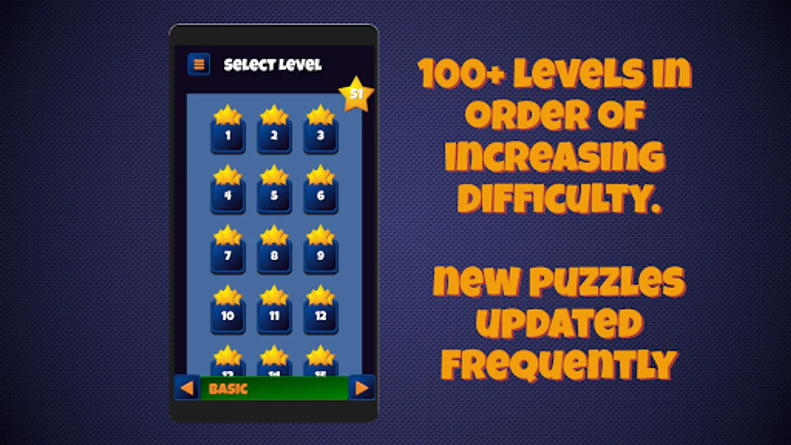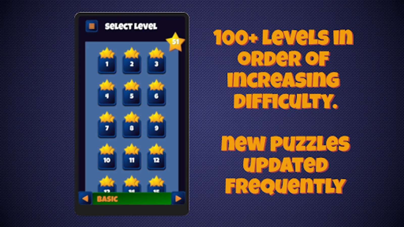 -120 levels in order of increasing difficulty.