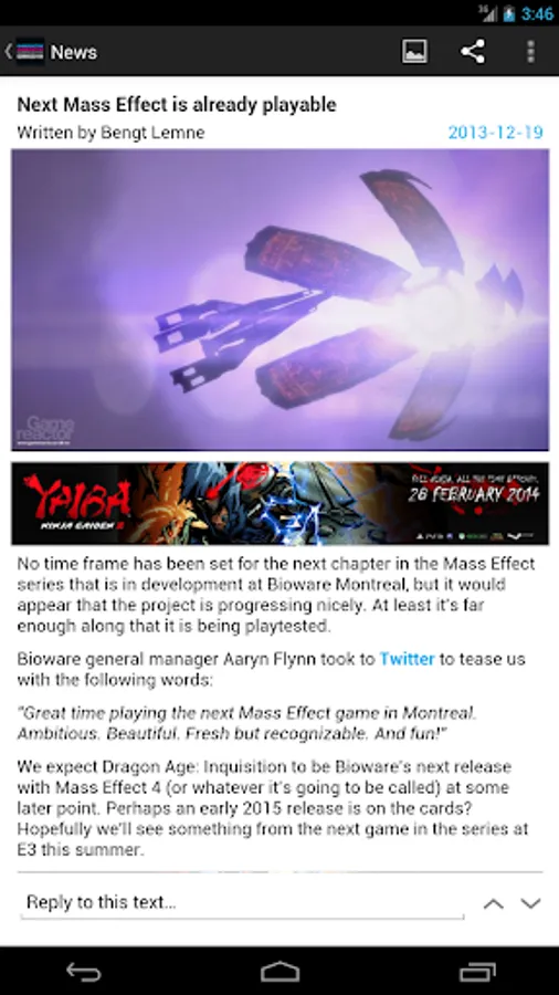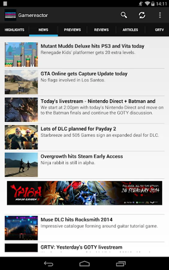 With a network of writers that stretches through nine countries across Europe, Gamereactor is already keeping millions of readers informed of the latest developments in the most popular formats; PS4, Xbox One, Wii U, PS3, Xbox 360, 3DS, PS VIta, PC, iOS and of course, Android. Here, we've streamlined that experience further to give you easy access to the content you want to read on the move.