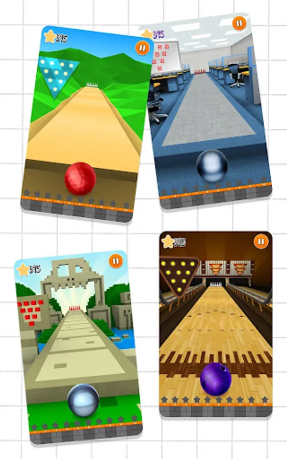Smash pins in crazy fun worlds of neon lights, retro polygons, voxels, caves, and candy!