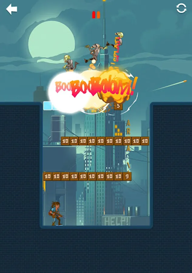 The Stupid Zombies return in a 4th installment of the popular series. By now you should know the drill: Bounce bullets off walls and kill all the zombies in each level. Some setups are more obvious than others, but you can’t knock the stupid out of the zombie without the occasional brainy puzzle.