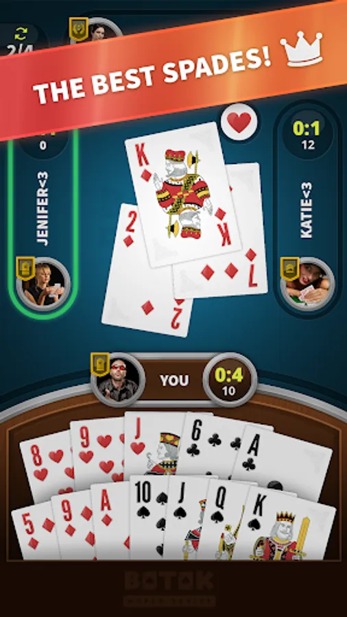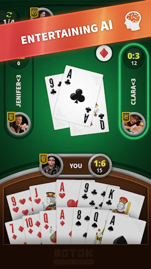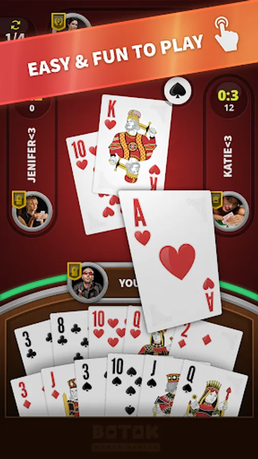 Batak is a quick and enjoyable card game based on counting cards and luck that is also known as Ace of Spades. Users can enjoy with two different game modes that are ♠ Classic Spades and ♠♥♦♣ Triumph Mode considering highly unique AI. Users can reach new ranks, achievements while they are unlocking colorful backgrounds with entertaining game experience. The game graphics have been designed realistic for motivating users to play more realistic game. We would be glad to see you as a part of this card game experience!