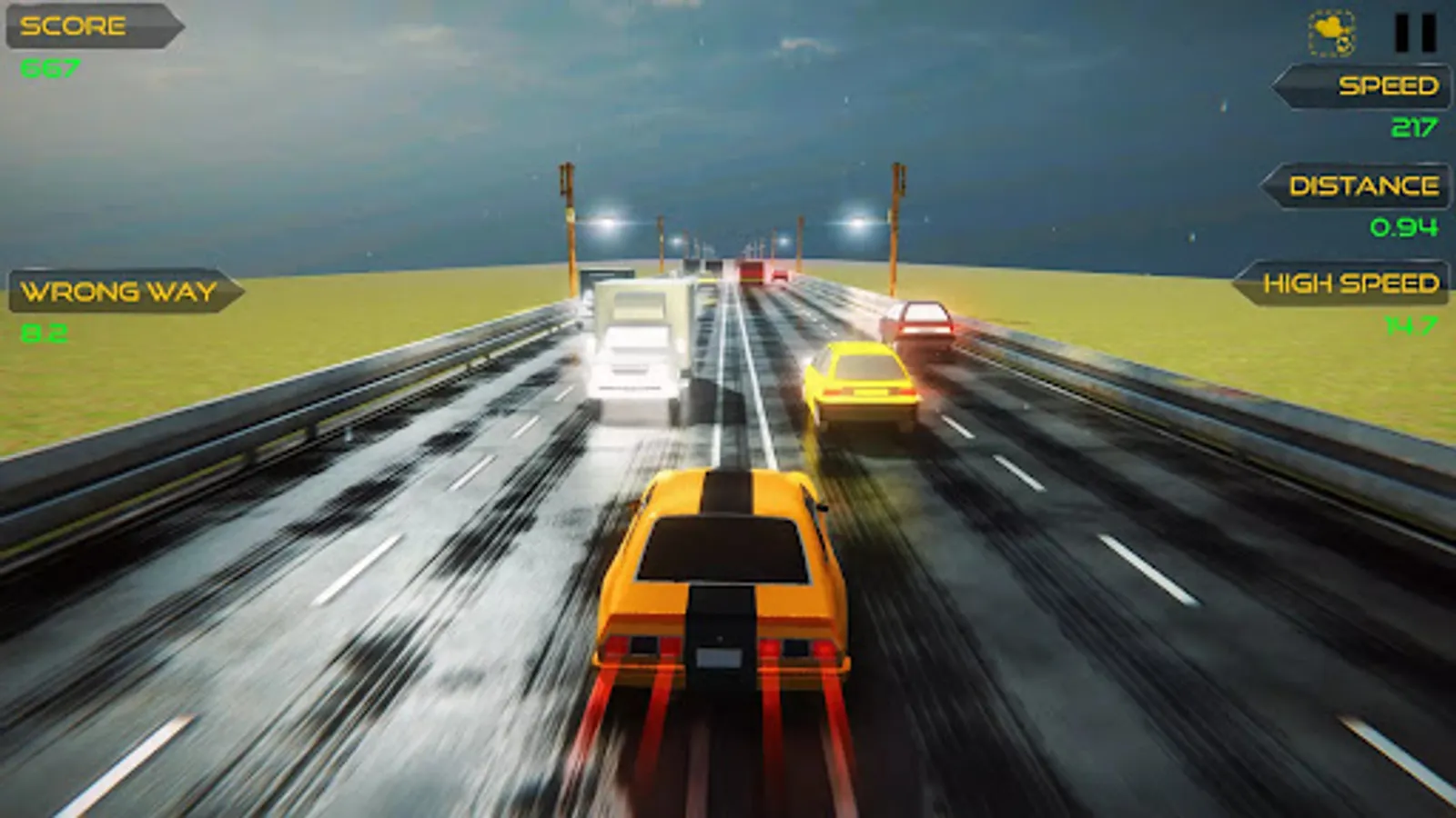 There are no limits in Highway Race but only your racing skills! That way you drive as fast as you can, overtake sharply, do things you couldn't do in real life, and eventually exceed your limit.