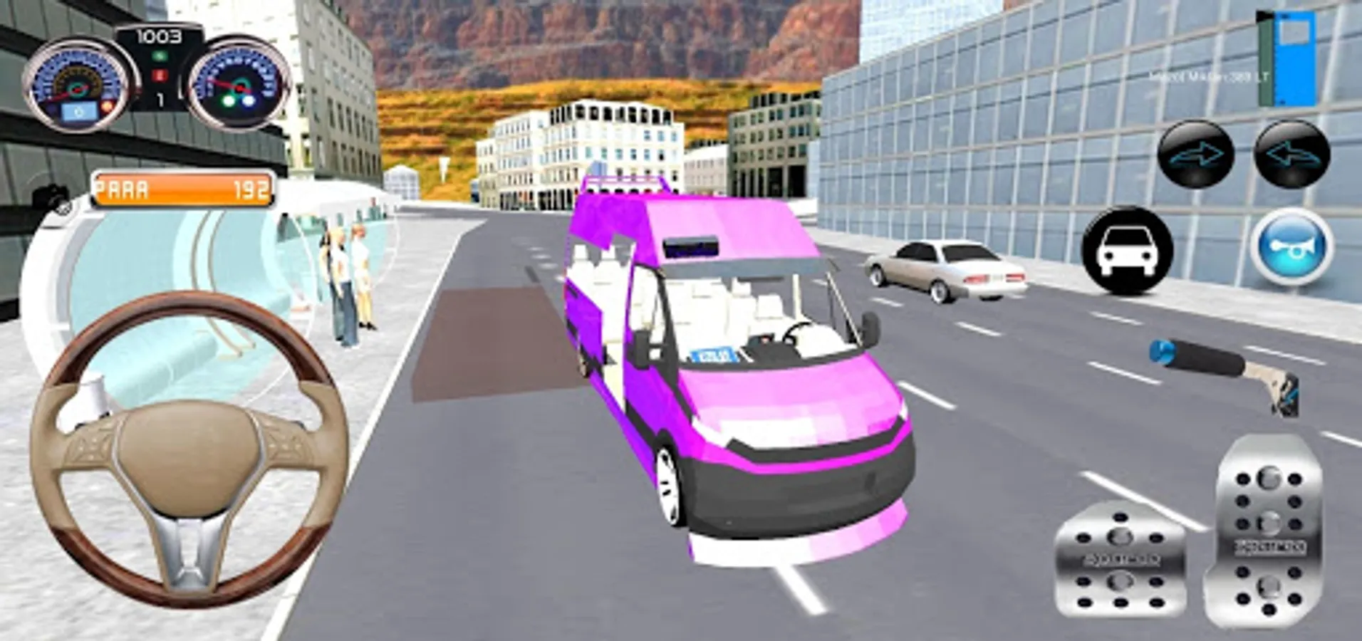 A great vehicle with inscriptions on it, realistic physics, roads, people and minibus stops