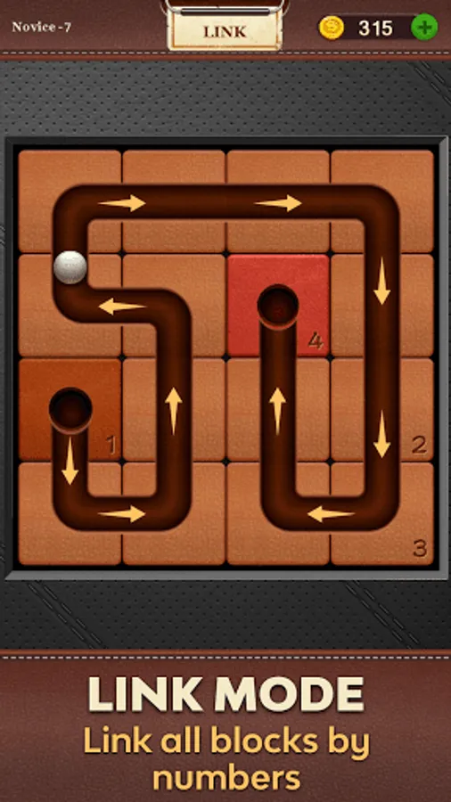 FILL PUZZLE: Create your own way by filling all blocks. Once all wood blocks fill with way rolling ball will roll to the end.