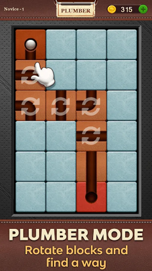 PLUMBER PUZZLE: Rotate the wood-blocks, Make way for roll ball to reach the end.