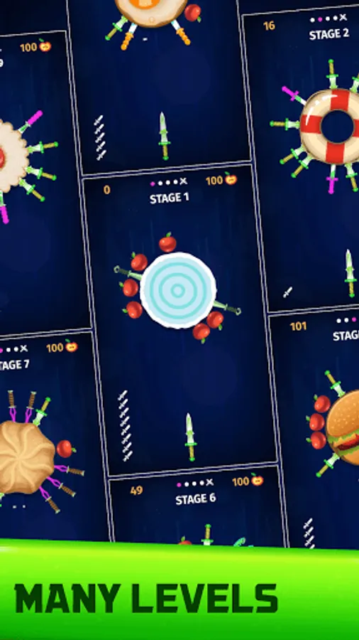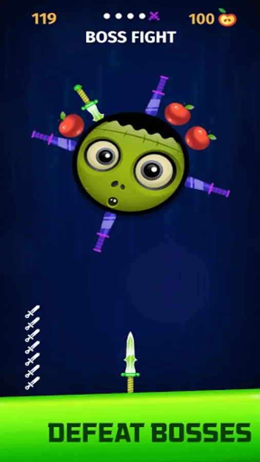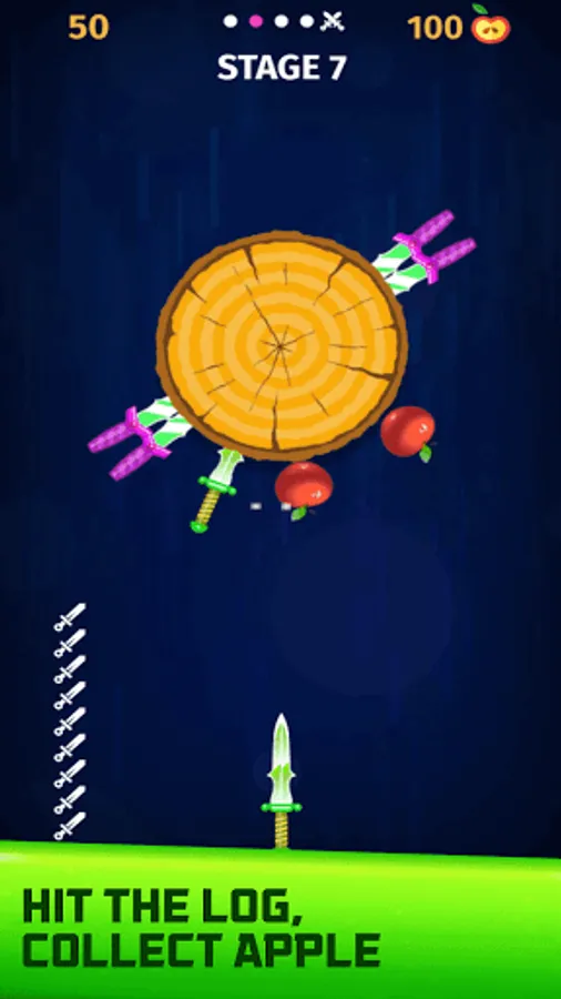 Throw the knives into the logs to break them. slice the apples and unlock new knives. Each 5th stage is defended by a boss - beat them to get exclusive knives!