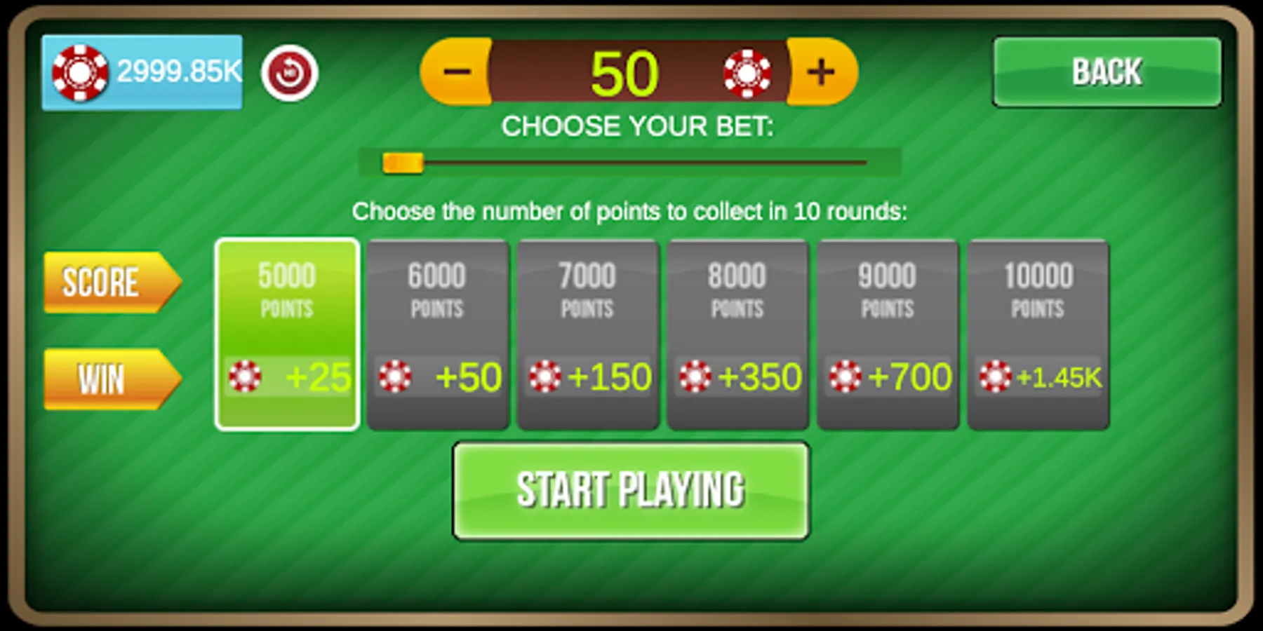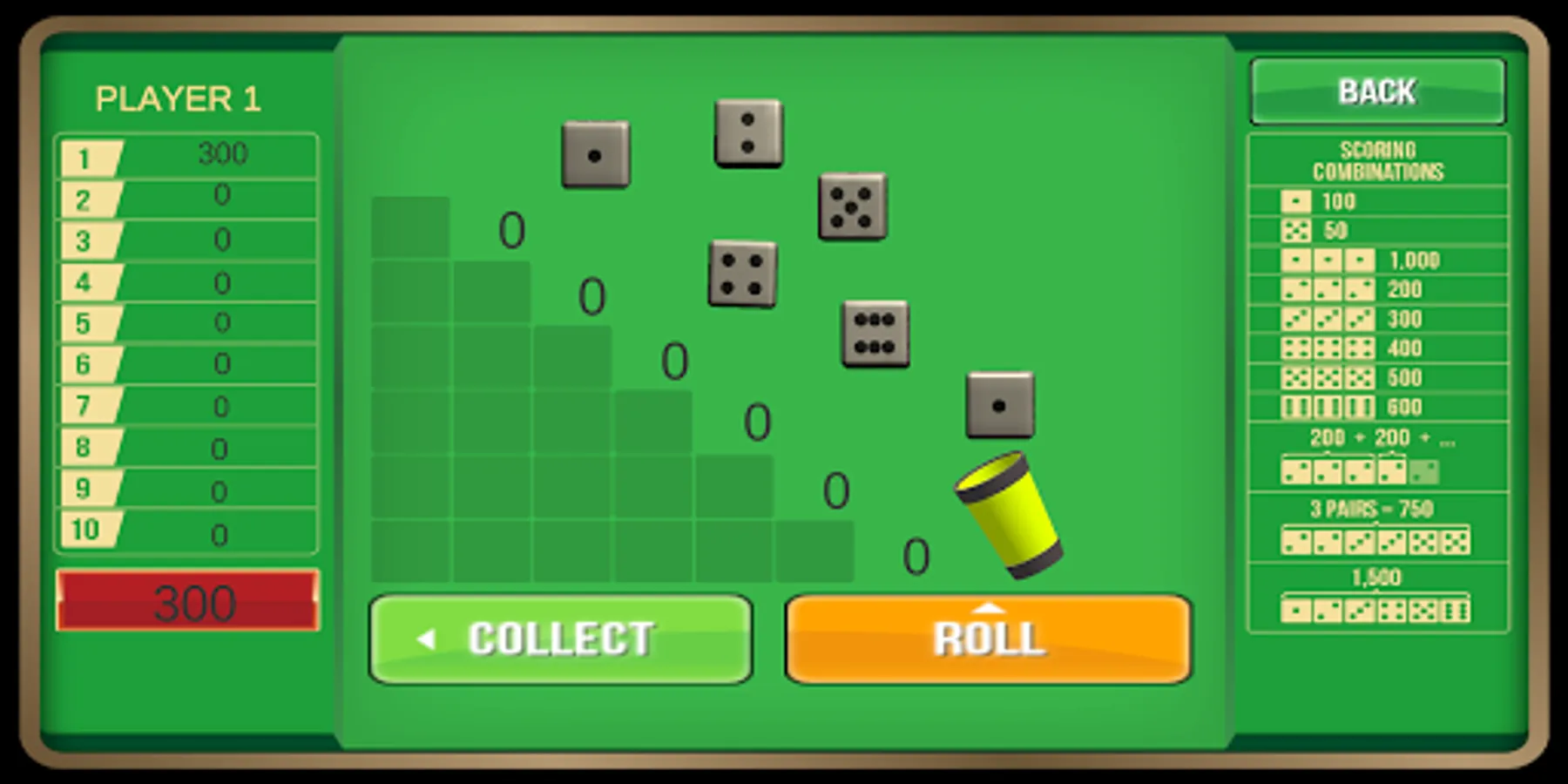 In this dice game, the players rolls the dice with the objective of reaching a target score from 5,000 to 10,000 in 10 rounds.