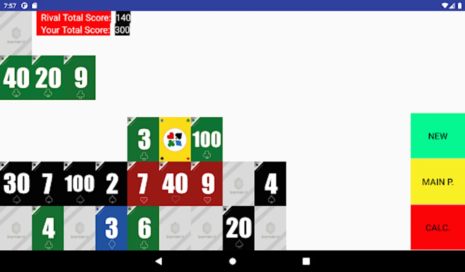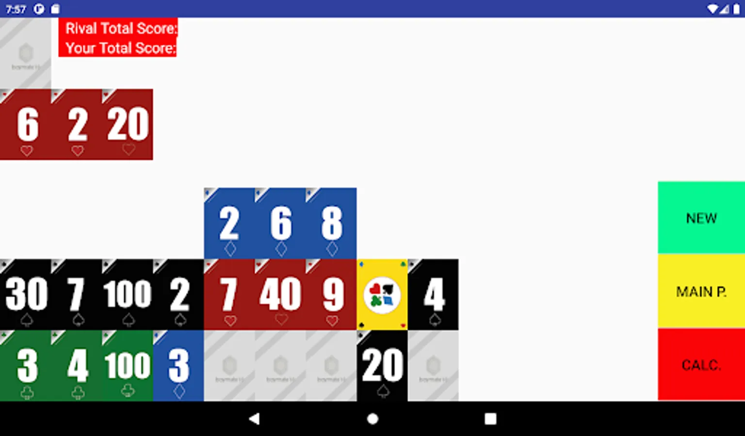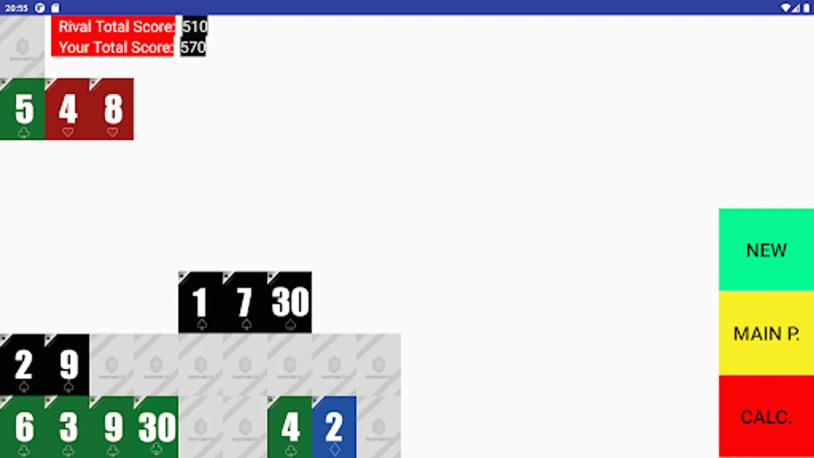 The game consists of a total of 54 colored geometric number cards. And each card has a game-specific point value and rank. In the game, 34 cards are dealt to the parties, 17 each, and 20 cards are left on the ground.
