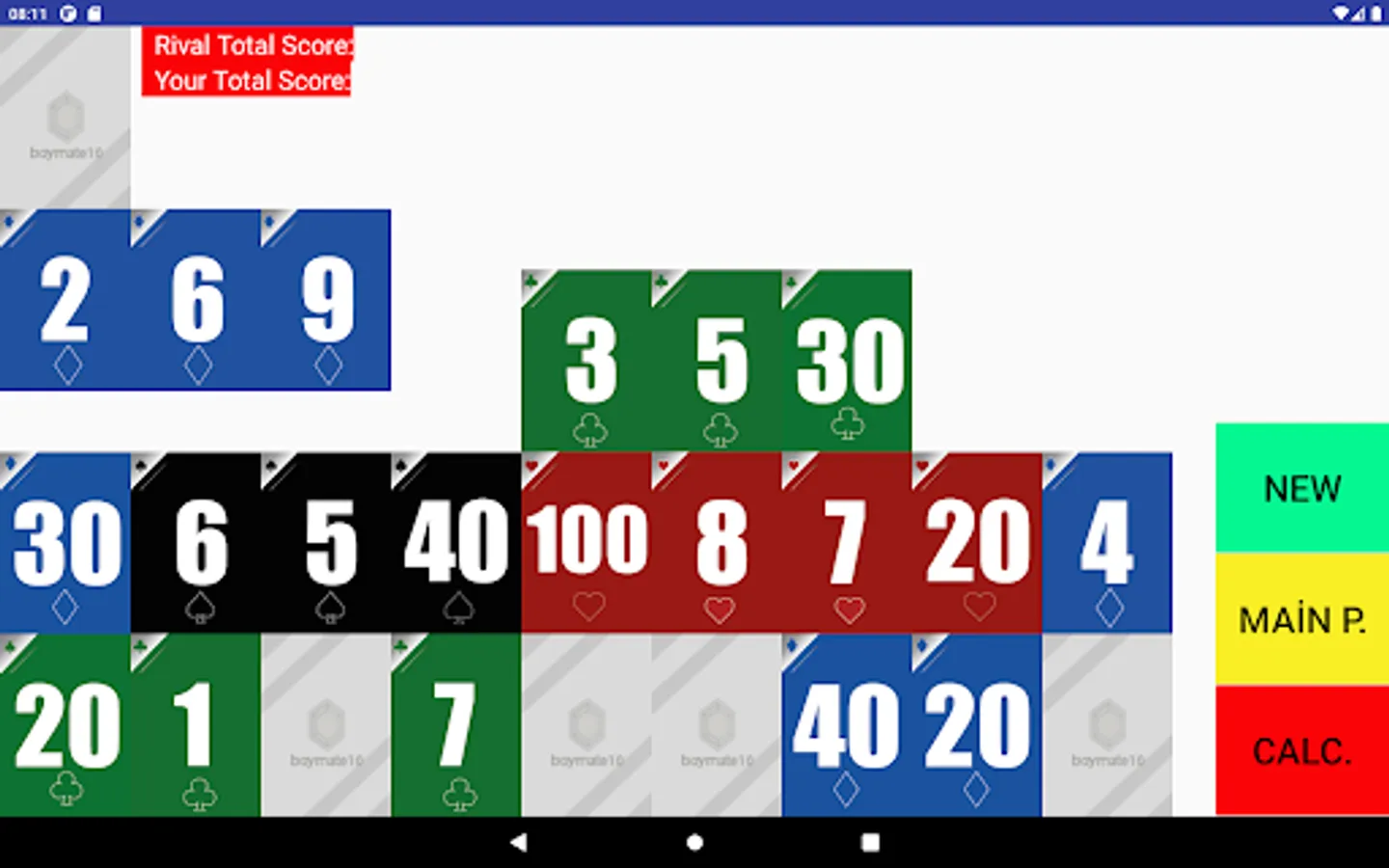 There are special hidden bonuses in the game, to get them we must find the number 8 or 18 in total when choosing the number or numbers of the same color. In other words, if the sum of 3 or 2 of the selected numbers is 8 or 18, it gives a hidden bonus. For example, if we choose 3,6 and 9 as cards, our score will be 3*6*9*10=1620 points. The numbers 2, 6 and 30 in singles will give a bonus as 2*6*10+30=150.