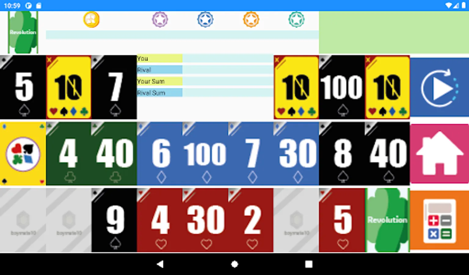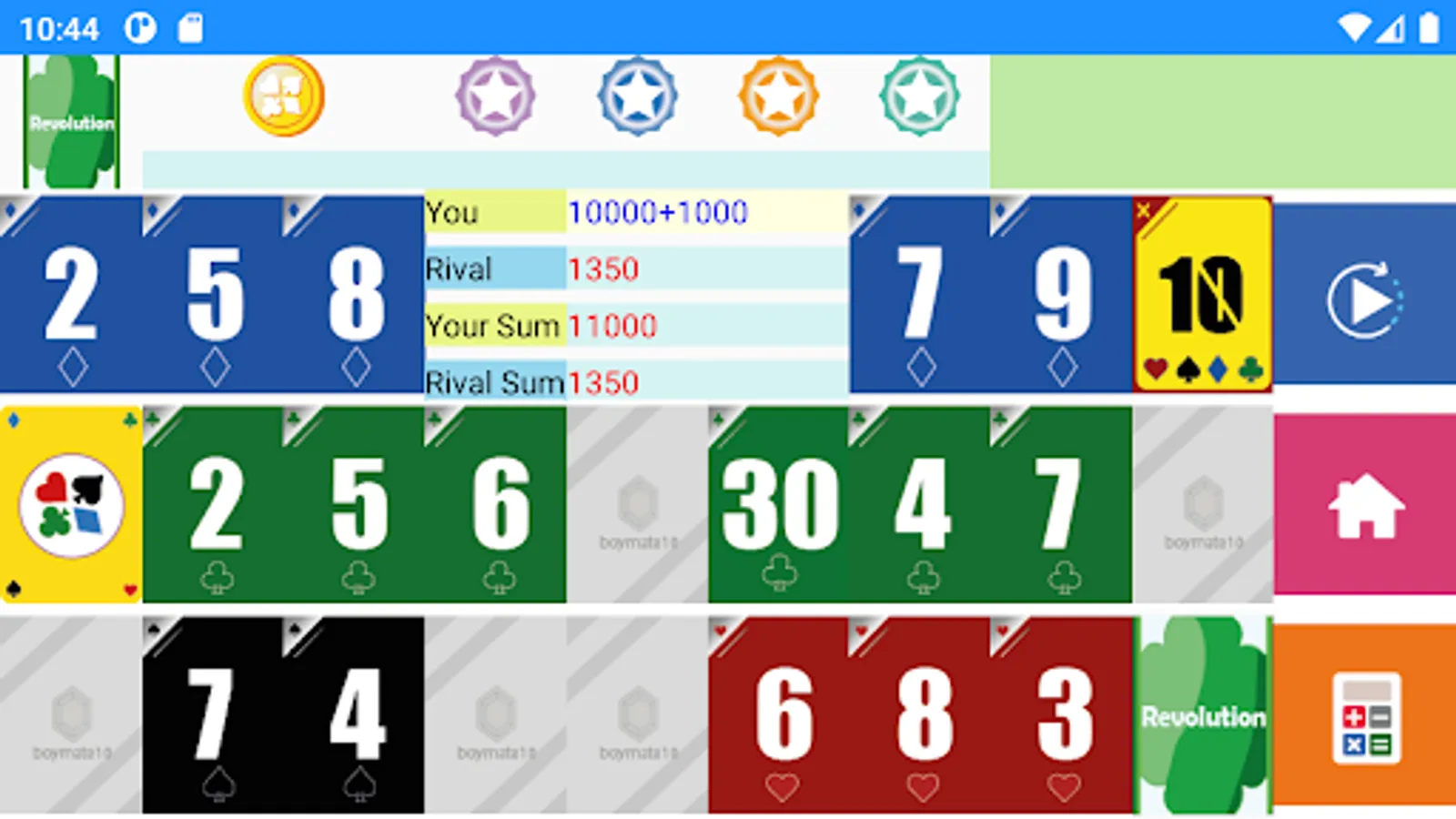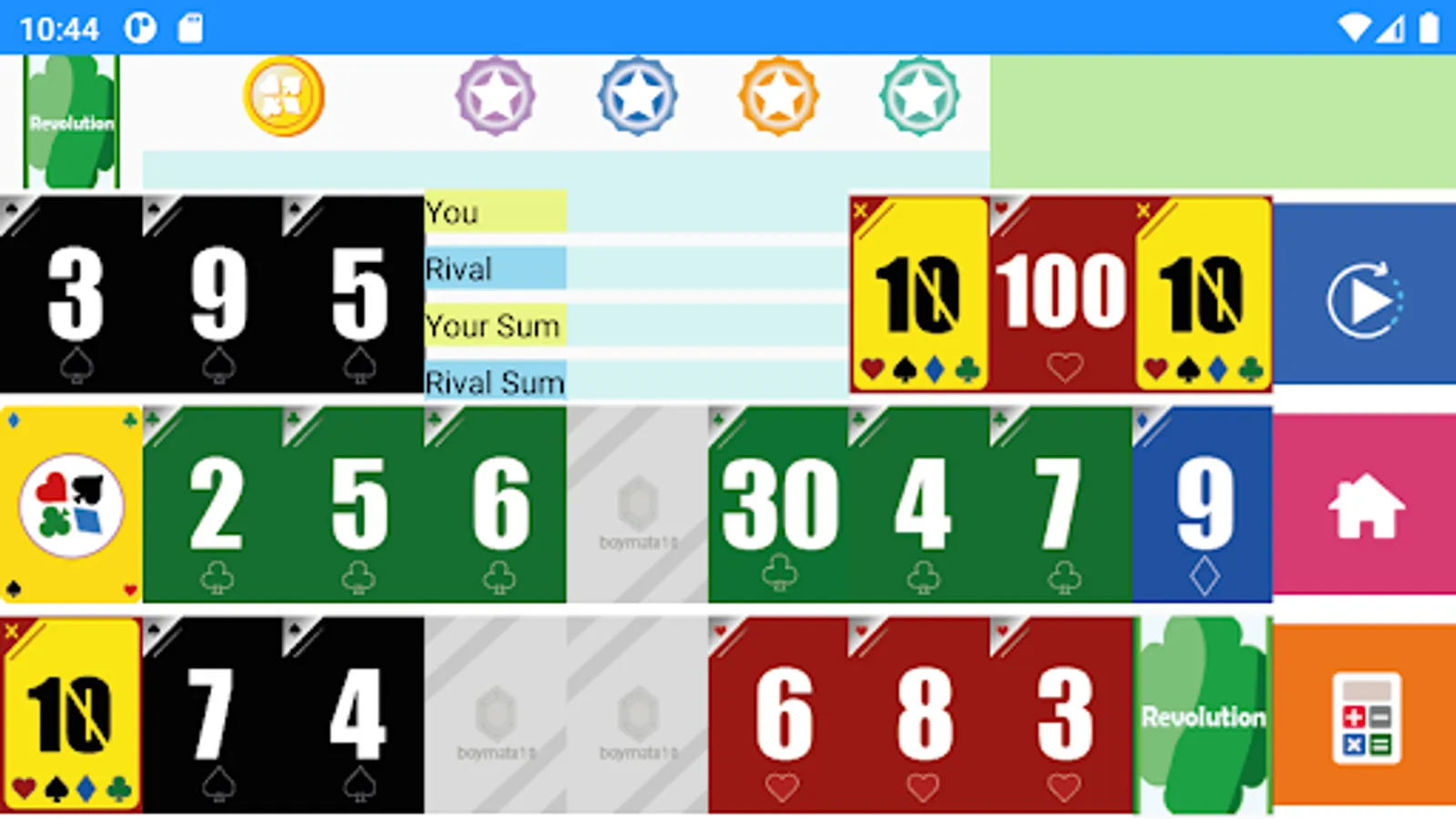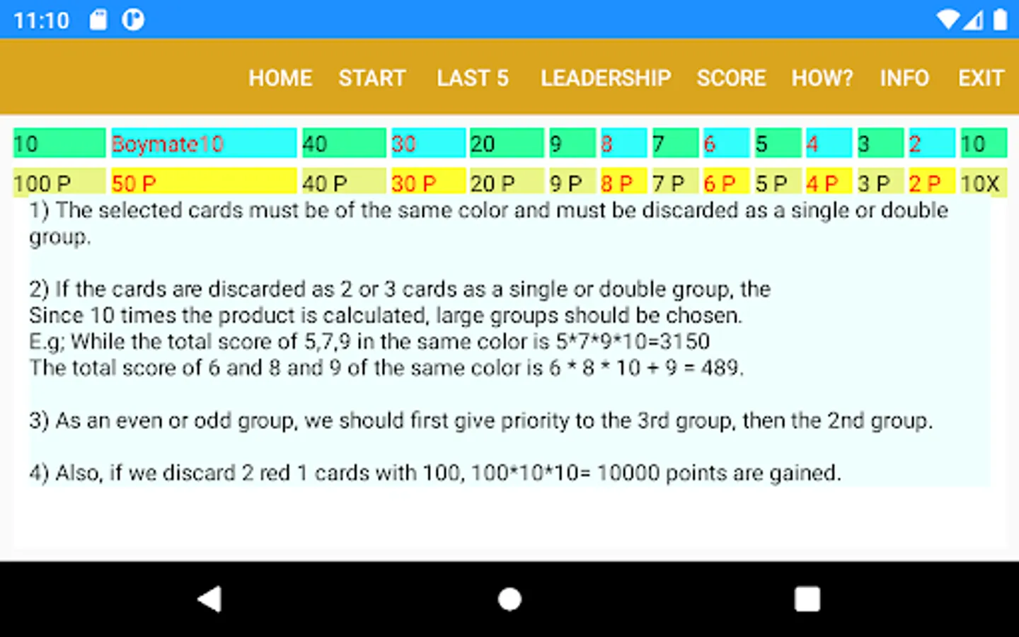 There are special hidden bonuses in the game, in order to obtain them we must choose the numbers or numbers of the same color as doubles and singles. In other words, the fact that 3 or both of the selected numbers are even gives a hidden bonus, while this is valid for singles. For example, if we choose 2,4 and 8 as the card, our score will be 2 * 4 * 8 * 10 = 640 points. In singles, the number 3 and 5 and 30 will give a bonus as 3 * 5 * 10 + 30 = 180. Odds and doubles must be less than 10. Also, the number 1 does not exist and instead, for the first time in the system, there are 4 in the same red color and shape. When used without a number value, it gives a bonus 10 times the numbers.