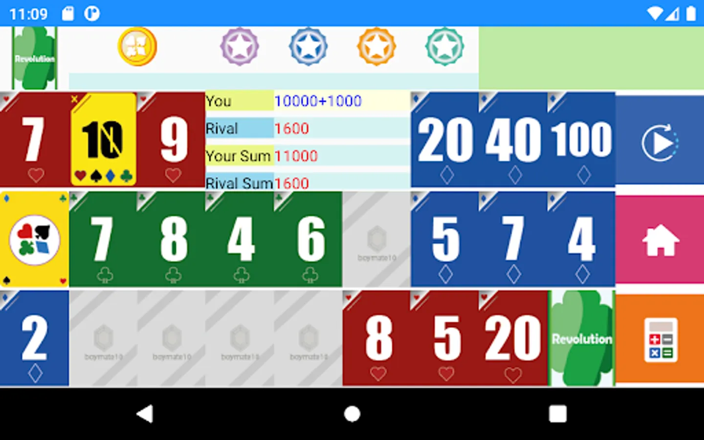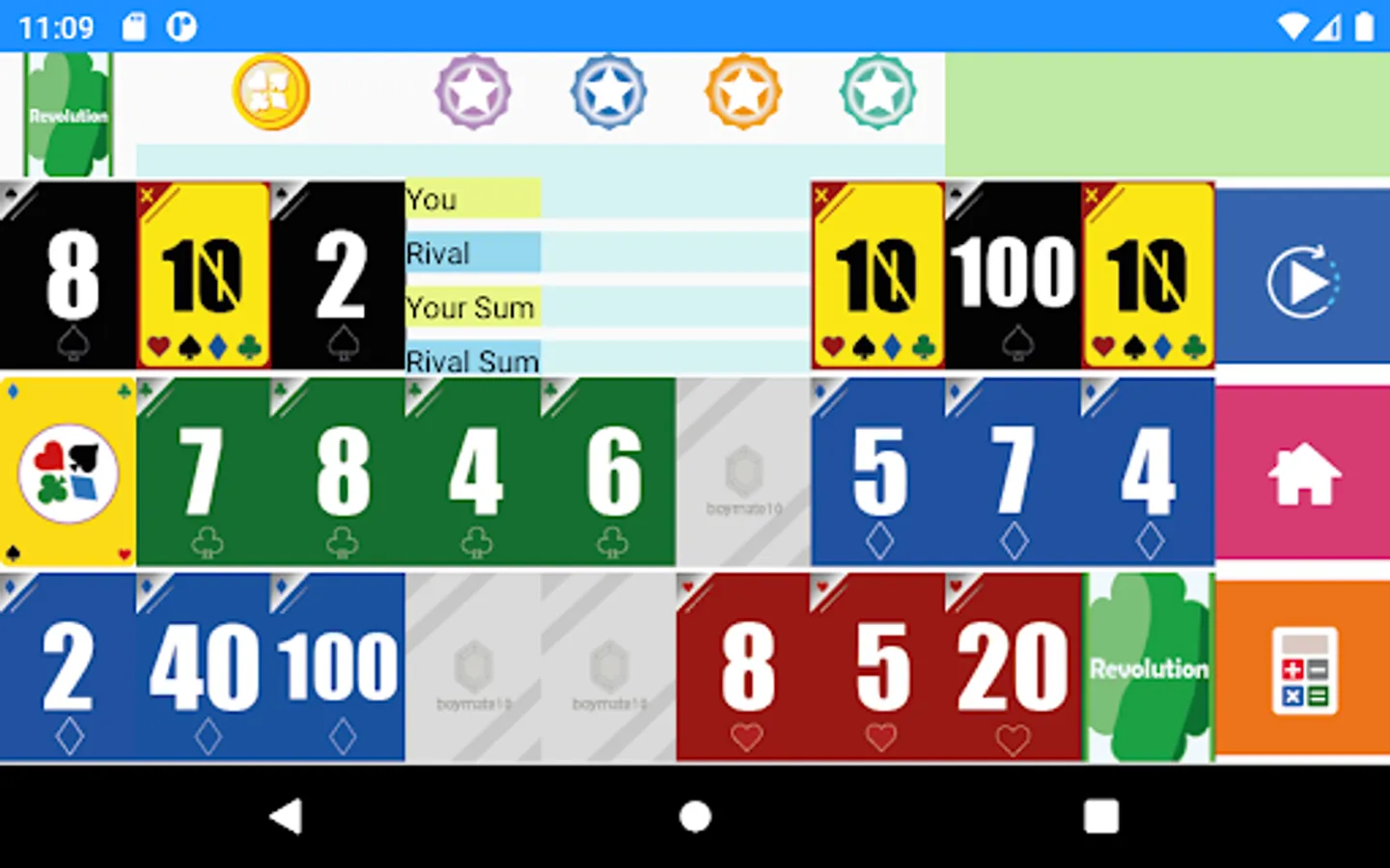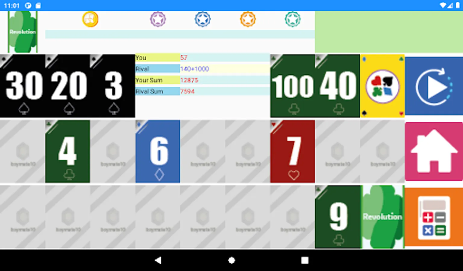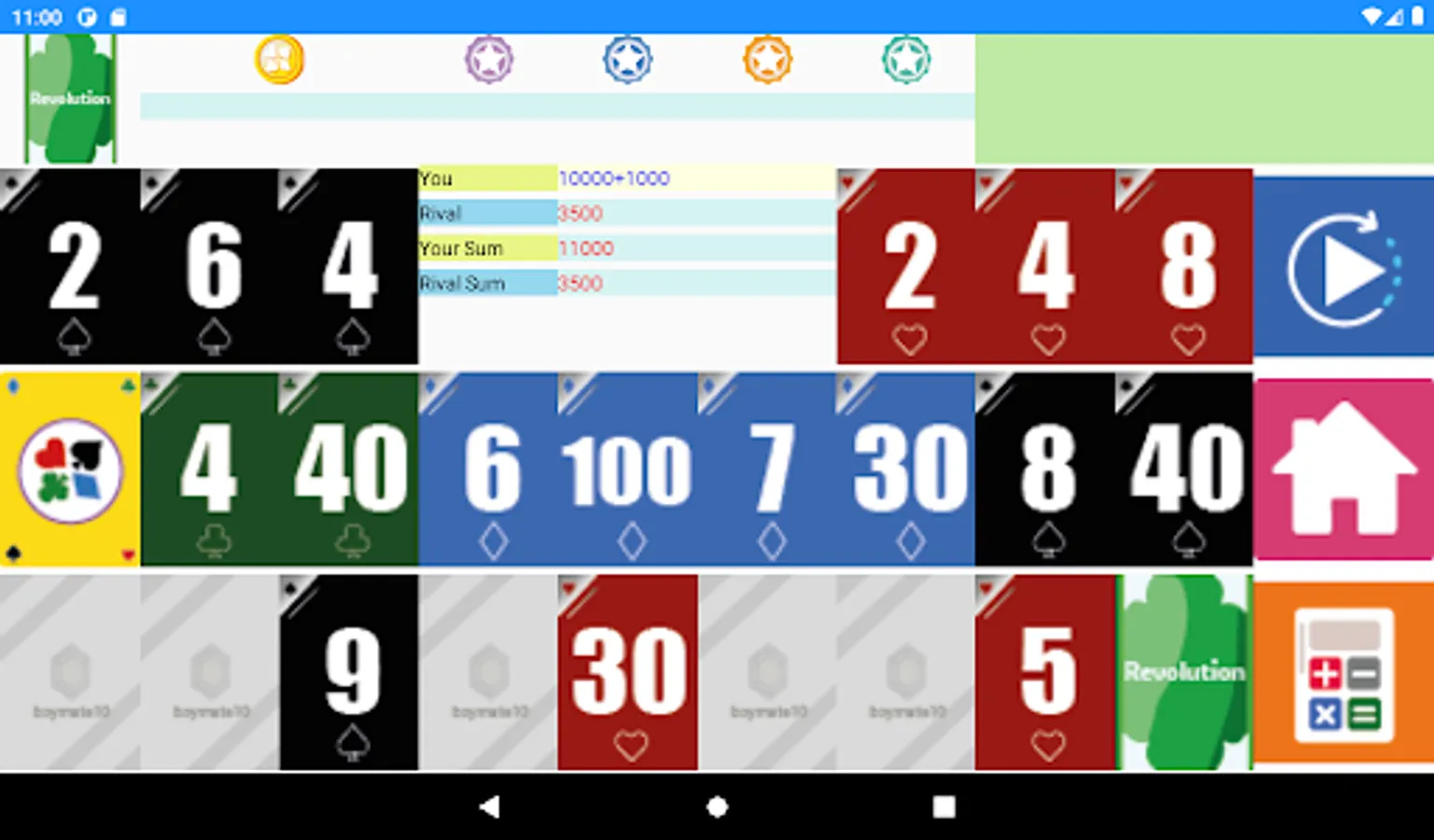 There are special hidden bonuses in the game, in order to obtain them we must choose the numbers or numbers of the same color as doubles and singles. In other words, the fact that 3 or both of the selected numbers are even gives a hidden bonus, while this is valid for singles. For example, if we choose 2,4 and 8 as the card, our score will be 2 * 4 * 8 * 10 = 640 points. In singles, the number 3 and 5 and 30 will give a bonus as 3 * 5 * 10 + 30 = 180. Odds and doubles must be less than 10. Also, the number 1 does not exist and instead, for the first time in the system, there are 4 in the same red color and shape. When used without a number value, it gives a bonus 10 times the numbers.