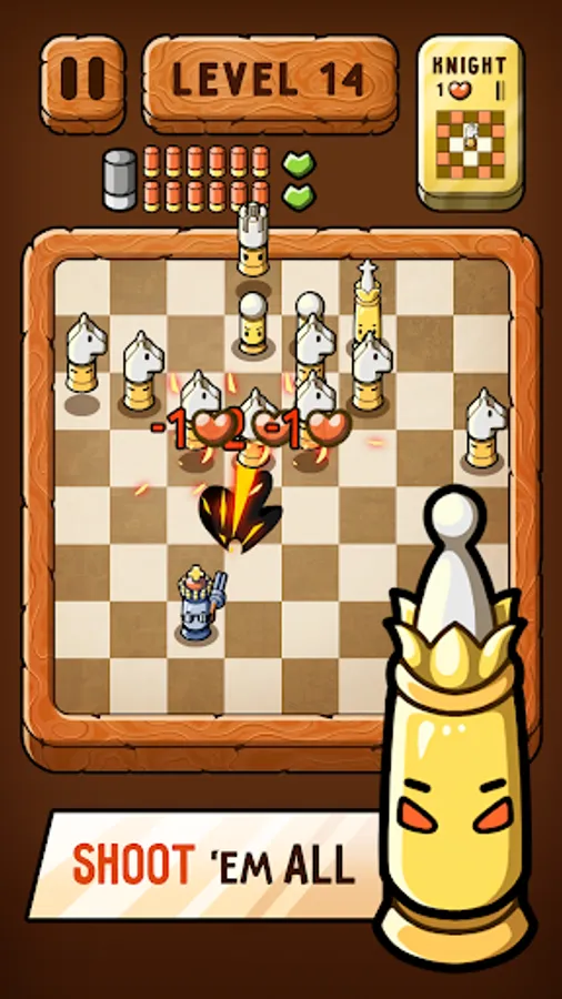 Unleash the power of the Shotgun King in this unique twist on classic chess! Stay alive, fight back, and collect gold to dominate the chessboard. Choose from a vast arsenal of weapons, navigate challenging levels, and outwit difficult bosses. With survival mode, endless mode, and over 40 levels, this popular logic game is perfect for beginners and chess enthusiasts of all ages. Download now and witness the chess king conquer with a shotgun!