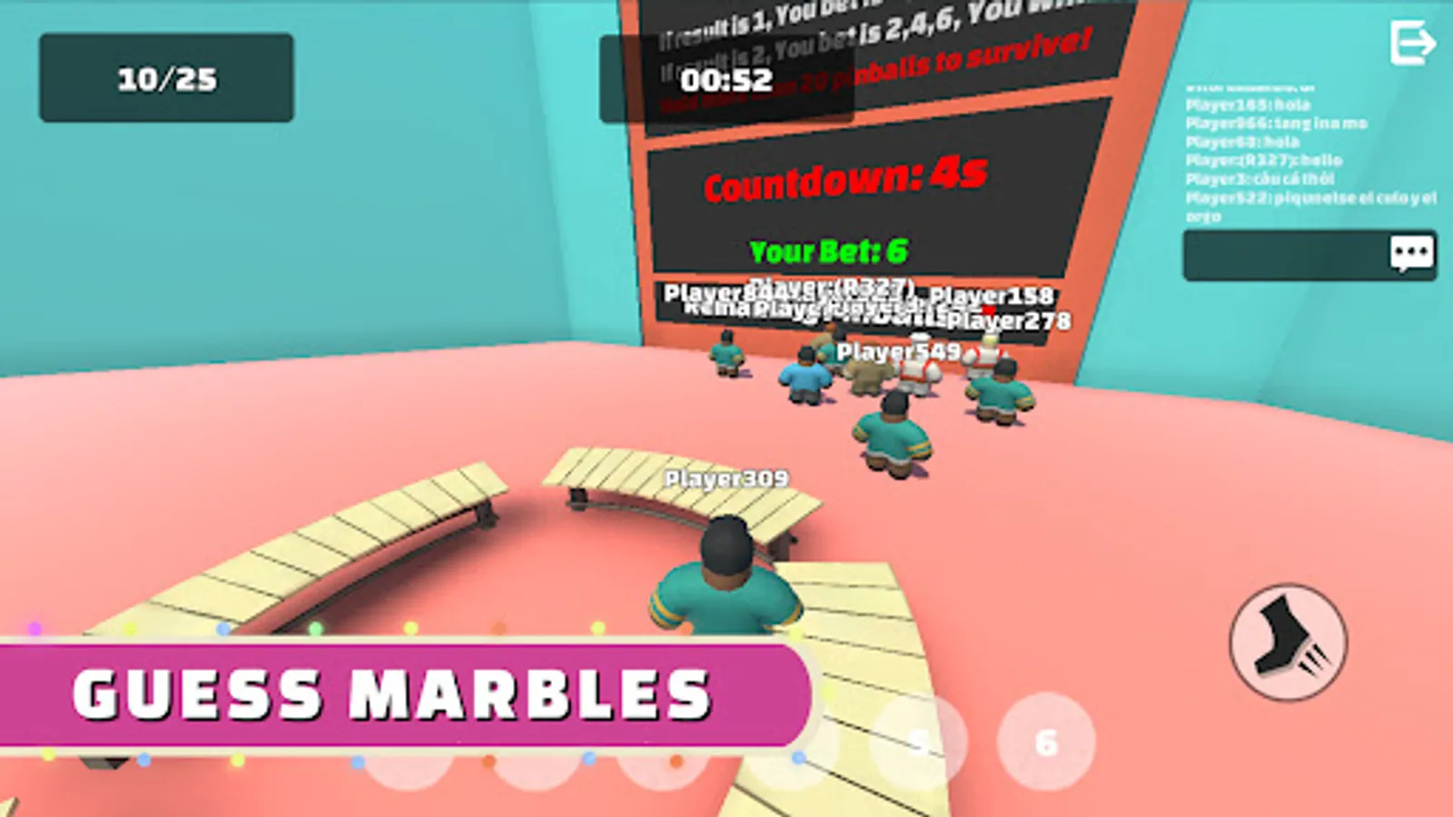 There are 10+ modes in game now: Red Green Light, Candy Parkour Challenge, Tug of War, Guess Marbles, Cross Bridge, Final Platform, Catch Hat, Platform Escape... You can also challenge to survive for 3 random days. Each room supports up to 32 people online at the same time. Enjoy the unique fun free online multiplayer survival game experience in "Rianbow Party: Friends Game" now and start your adventure party.
