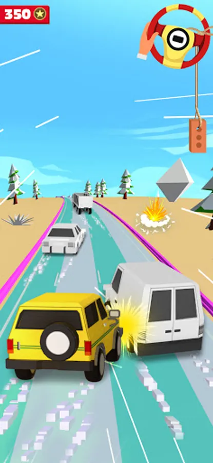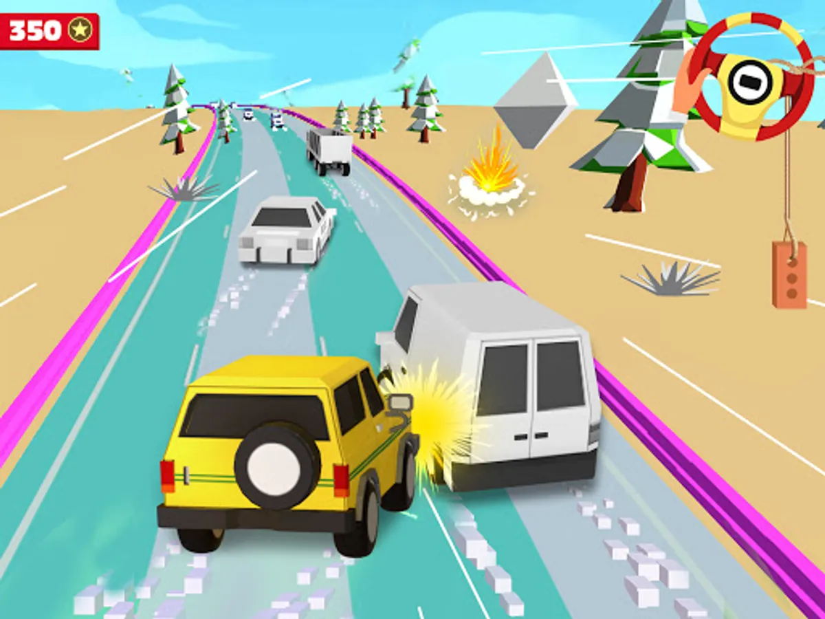 Timing is all important as you methodically target the the rival cars by strategic touch and leave control.