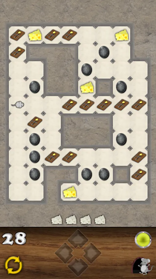 Can you help the cute little mouse to find the right way through the labyrinth, without running into a mouse trap? You must only push the stones into the traps and the mouse can past it. Cleo is full when she has eaten all the cheese from the field and you have won the game. You can choose from three level of difficulty, with many different games that you can step by step play free. There is also the great possibility to generate your own level with the integrated level editor.