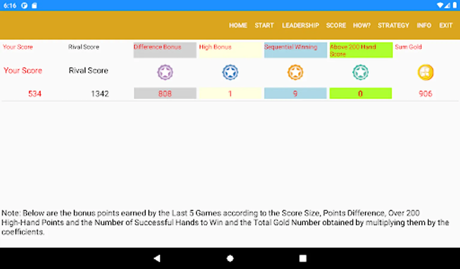 In the game, each hand earns plus 50 hand points during the first 8 hands with a high number of cards.