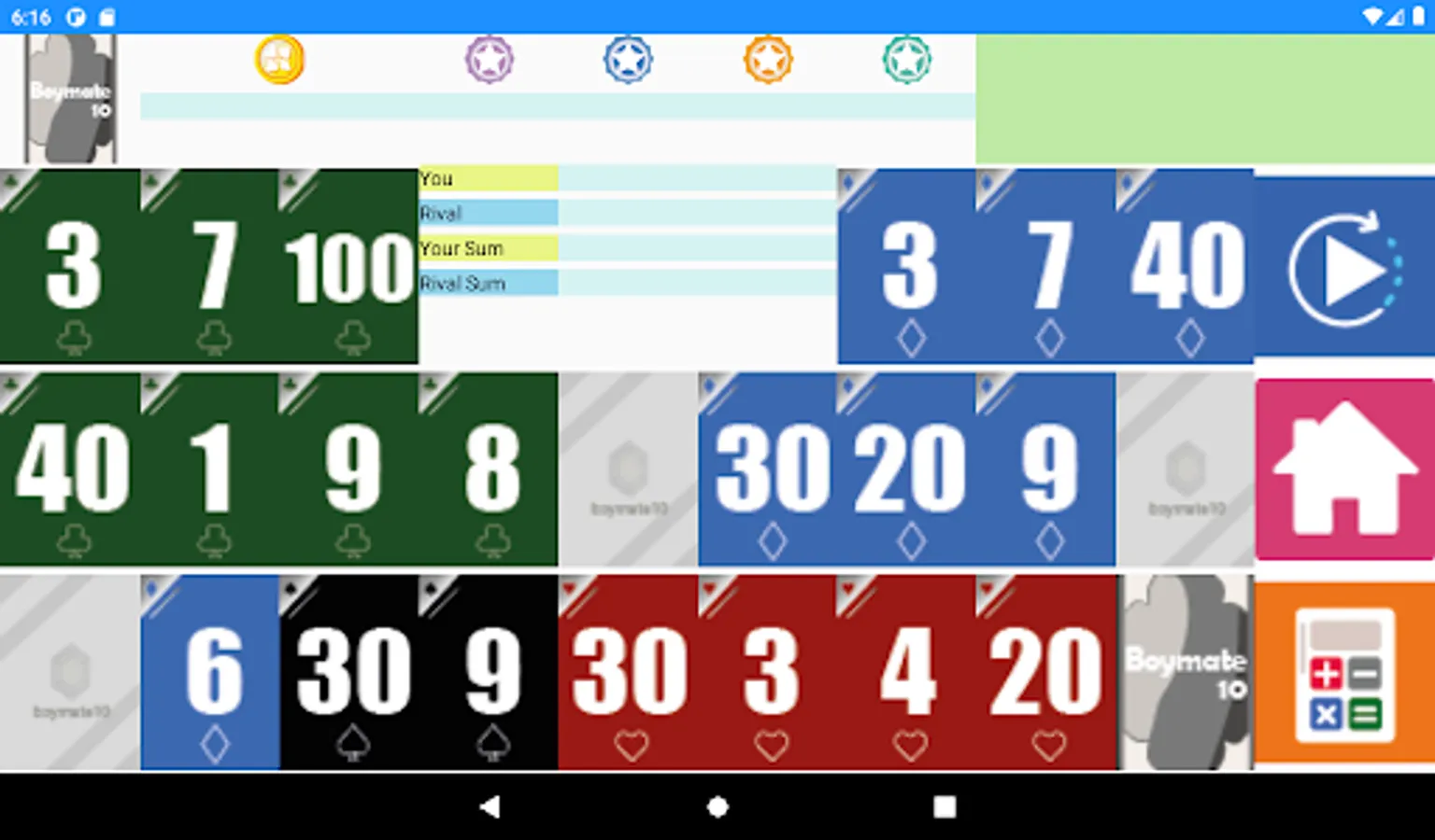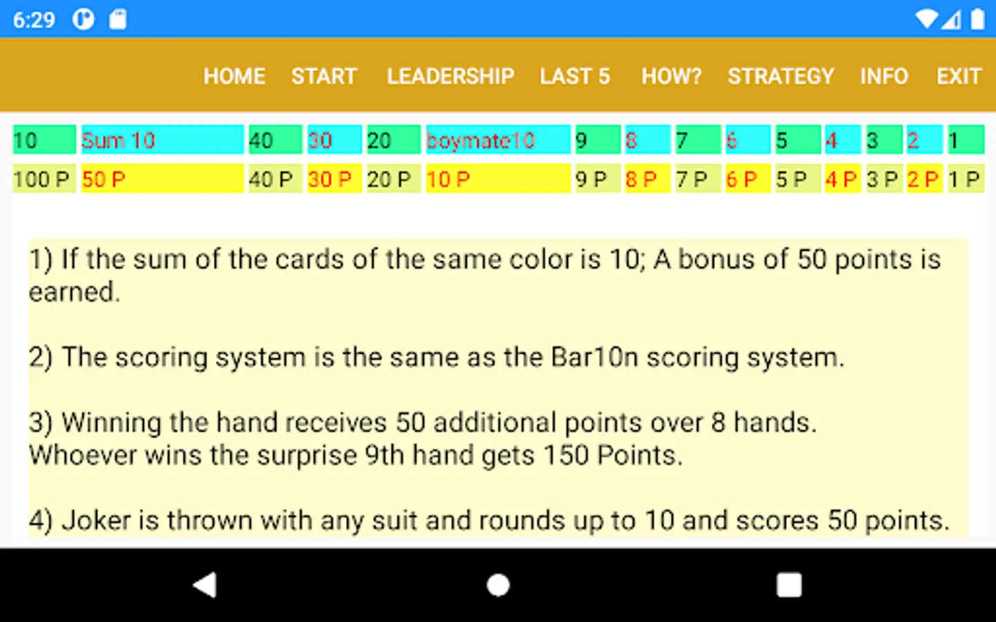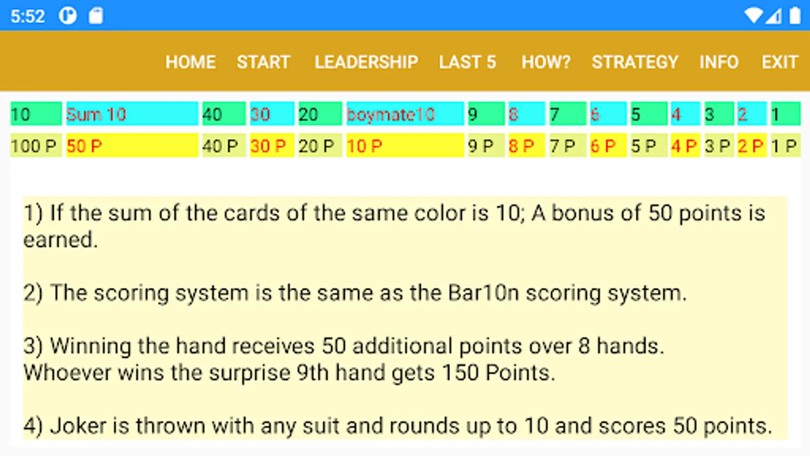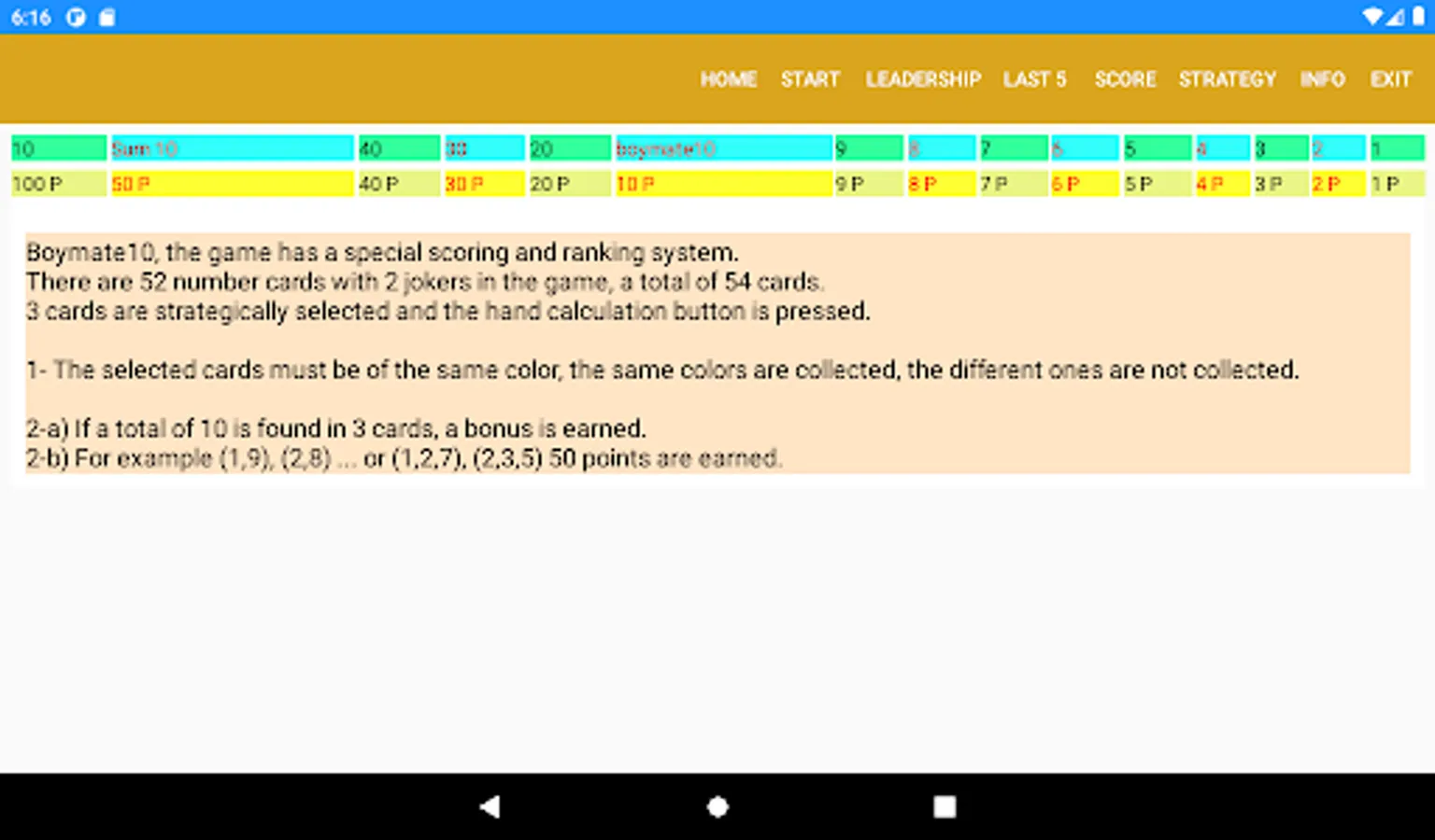 Boymate10 uses the scoring system of the Bar10n game created with a very special scoring system.
