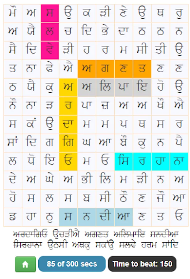 This is an interesting Punjabi Word Search game. The purpose of this game is to learn about Punjabi and Gurbani words in a fun and interesting way. This would enable us to start using these words in our day-to-day talks.