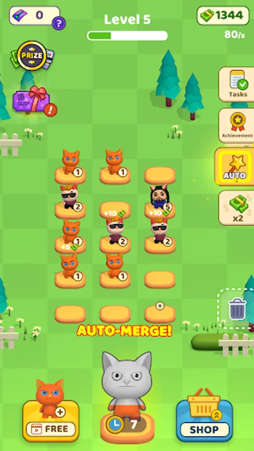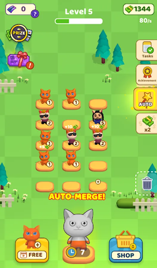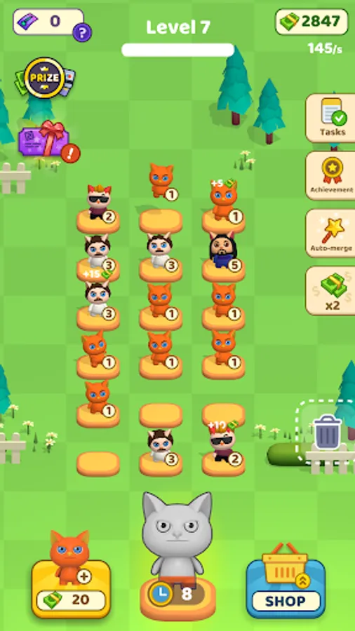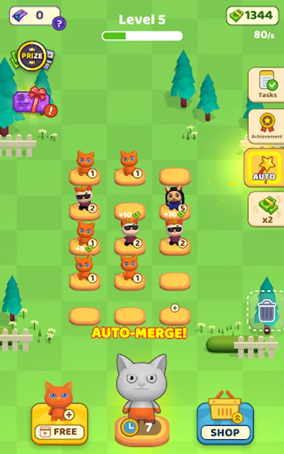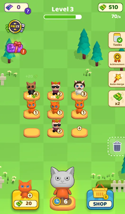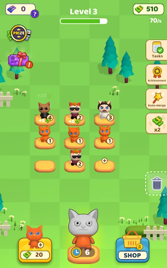 Collect unique skins and unlock new kittens. Upgrade and merge new characters to get more profit. Complete tasks and earn achievements!