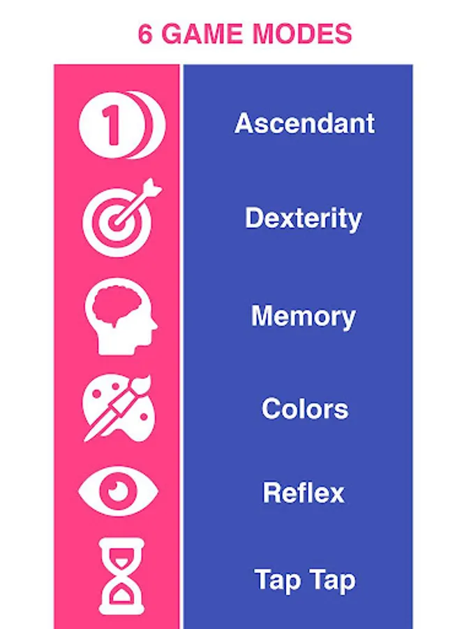 ☆ In a test you will have to follow a numerical order, touch the right color or wait for the signal to tap in a circle.