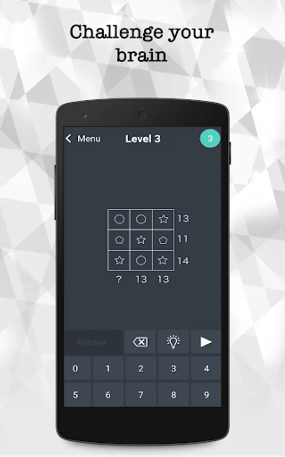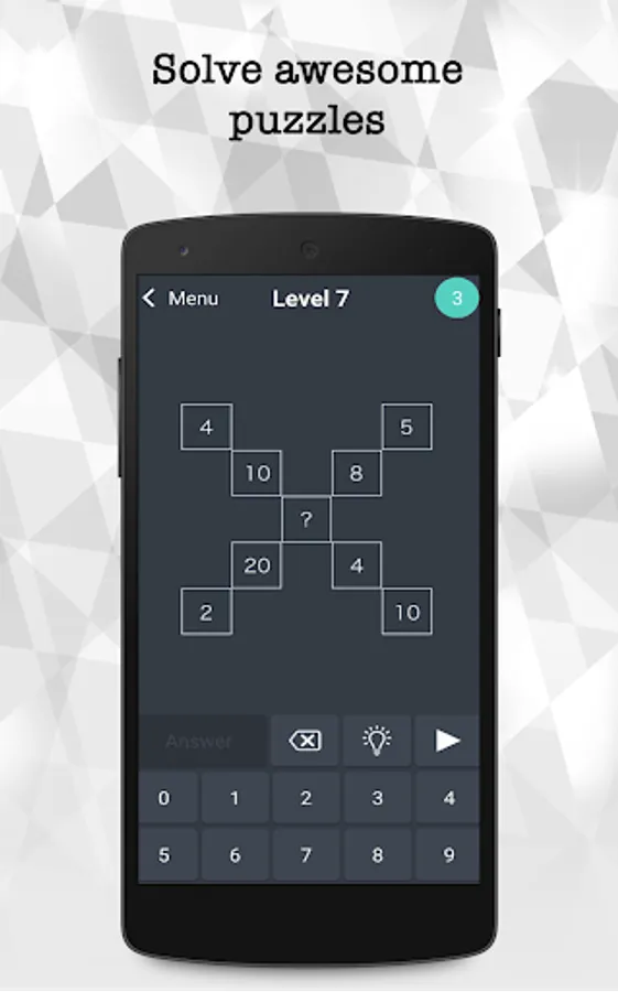 100 different levels of math puzzles, riddles and challenges are available to all users. The app will make you enjoy every level that you are facing. Difference is never bored, so, just get started and enjoy!