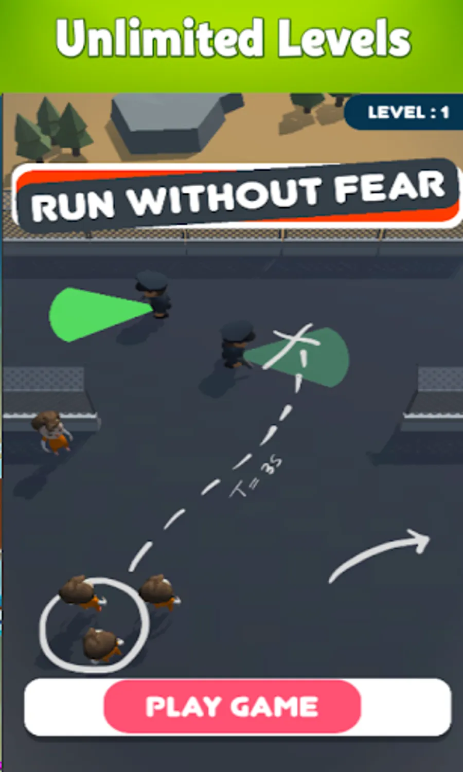 Run Without Fear is an adventure game try to escape the jail to insure you completed the level try to escape from police and camera if you can.