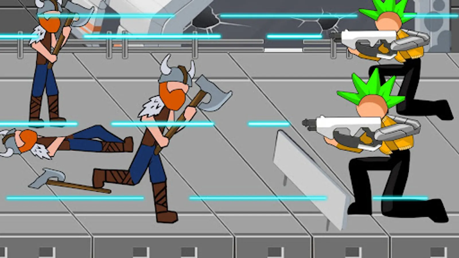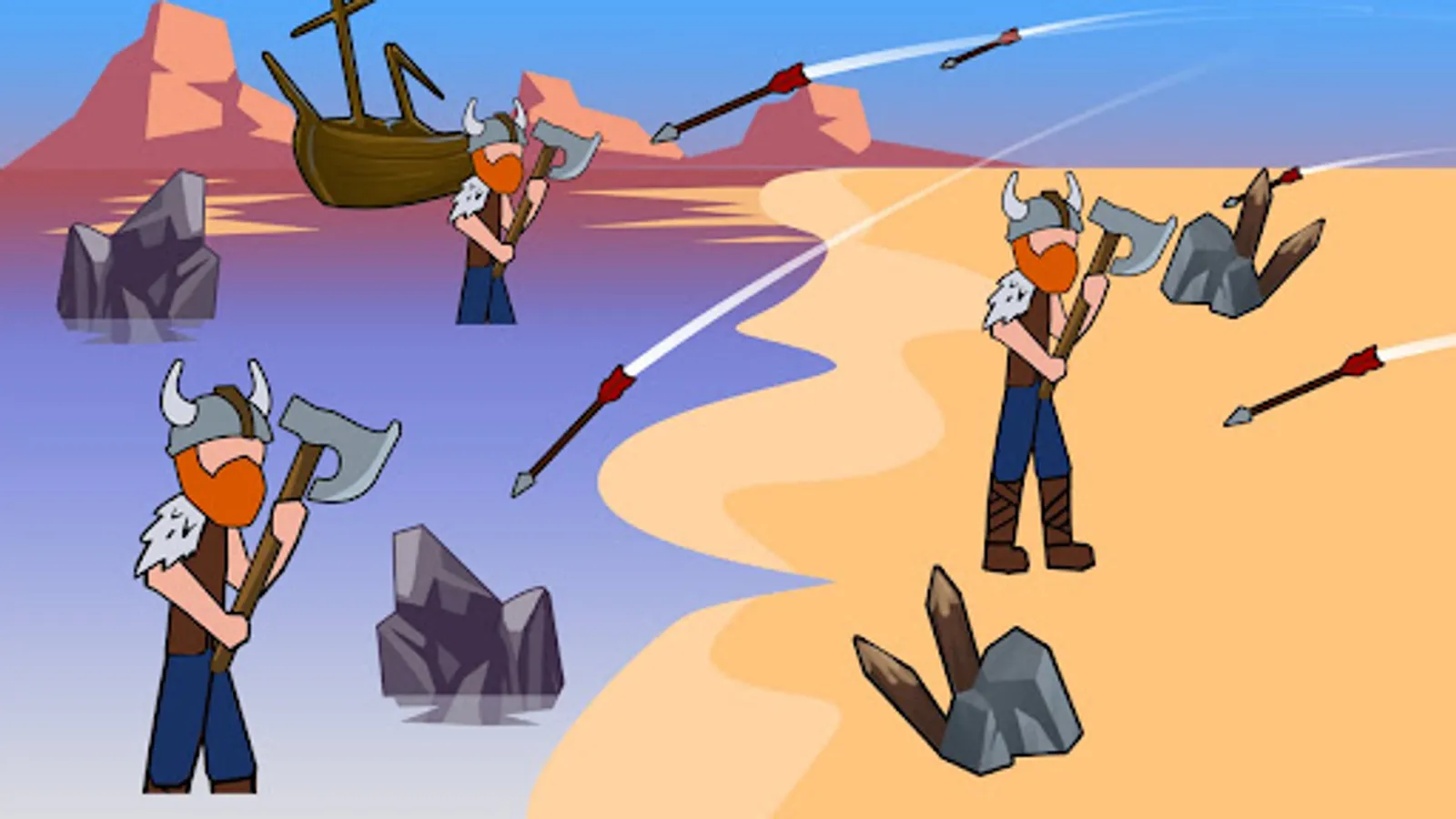 Stickman History Battle is a new war game, which is an independent and original game about stickman from History Battle series. The game incorporates the best of the adventure and real-time strategy genre. Fight through different eras together with the stickman heroes. Journey through different eras: The primitive, Vikings and knights, modern times and even the future. Build your great kingdom of Stickmen and fight against enemy civilizations. The strongest will win!